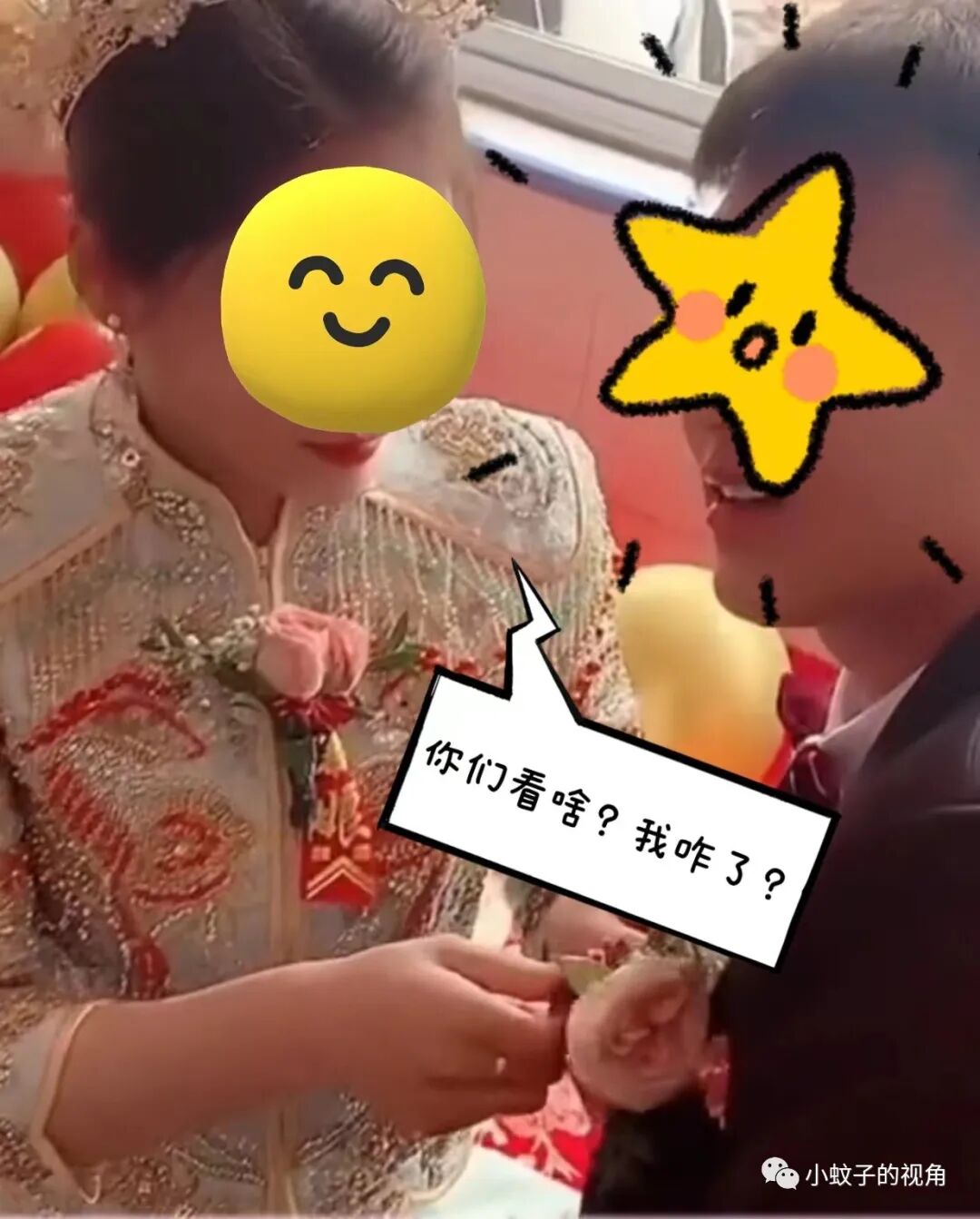 就像这对新人一样,别人吃狗粮都快吃饱了,新郎还一脸懵地看着众人,仿佛在说:你们都怎么了?