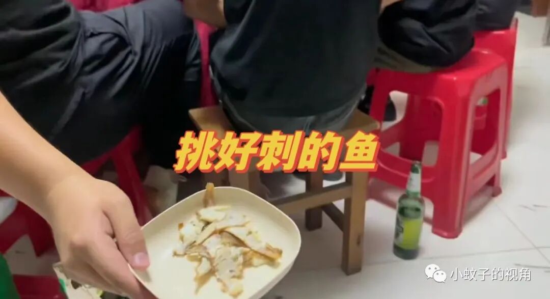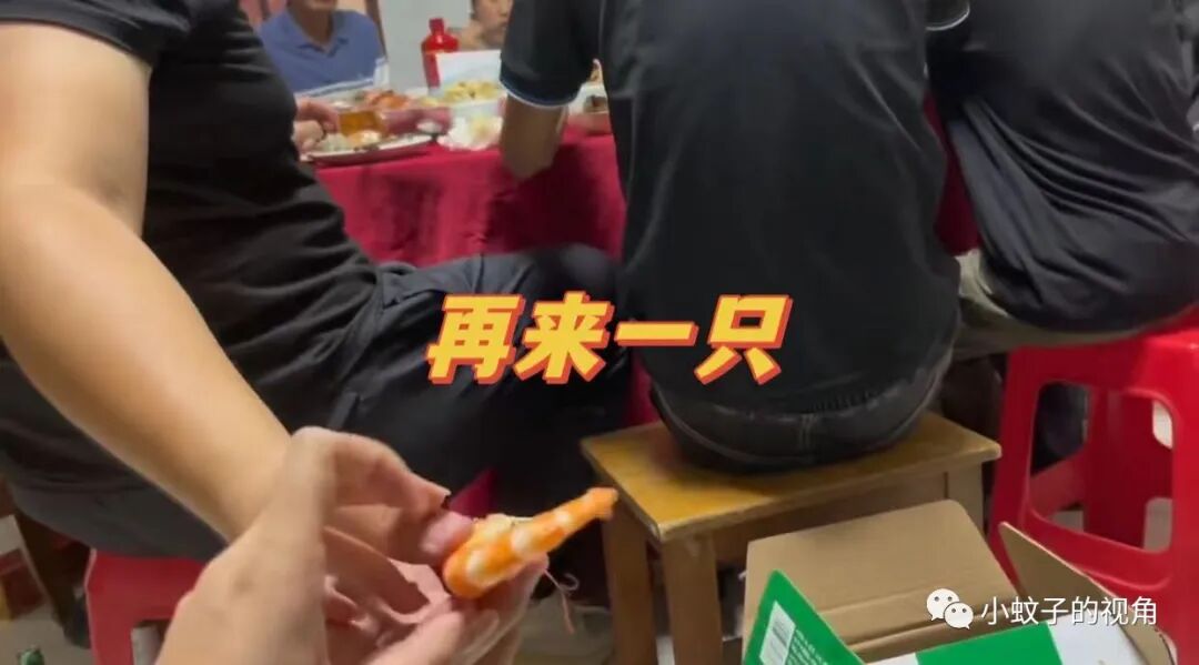 所以,这位老公给媳妇递鱼虾很正常,男人桌子上以喝酒聊天为主,菜吃不多,反而是女人和孩子的桌子上的鱼虾不太够。