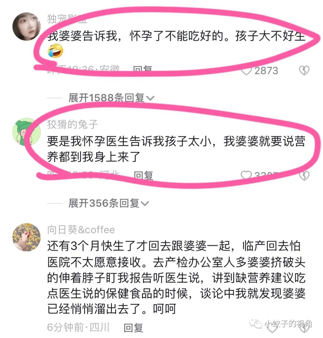 也有网友表示家有同款婆婆,说:如果我怀孕,医生告诉我孩子太小,我婆婆就要说,营养都到我身上来了。