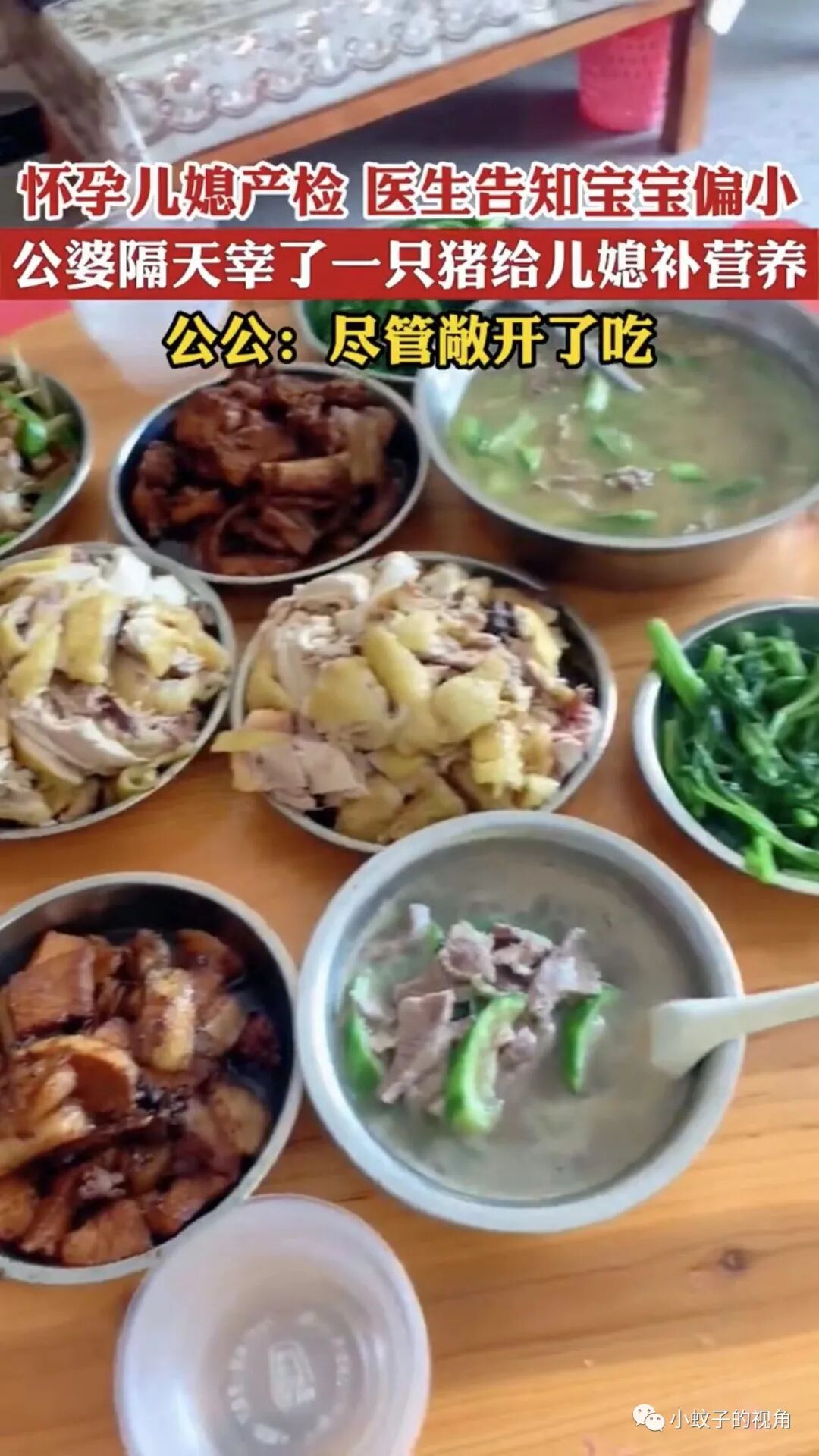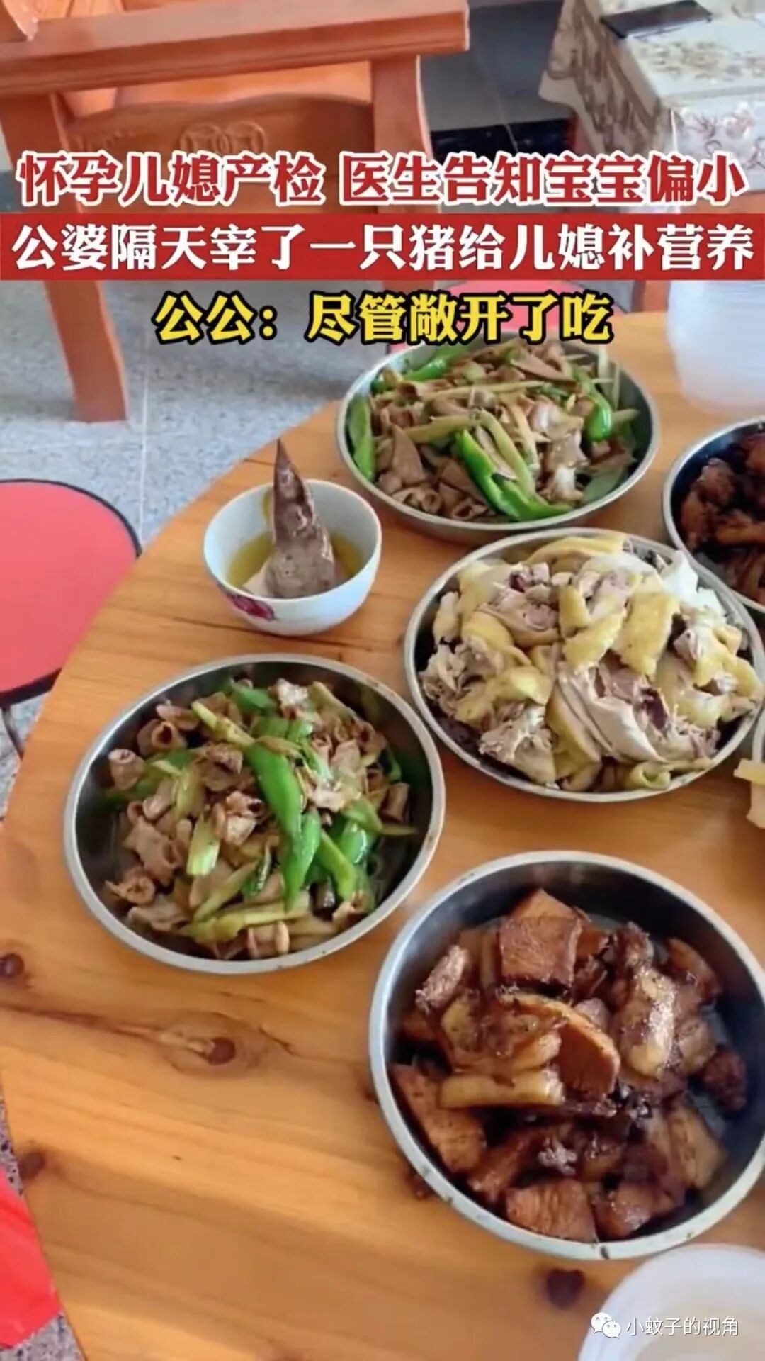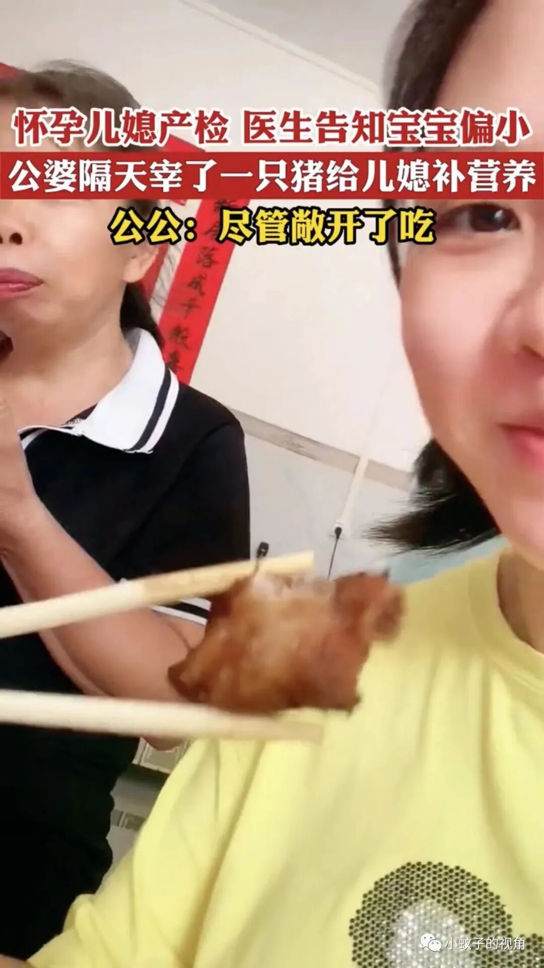 当然,也有通情达理的好公婆,就像广西的这对公婆一样,得知儿媳怀孕胎儿偏小,毫不犹豫宰了一头猪给儿媳补身体。