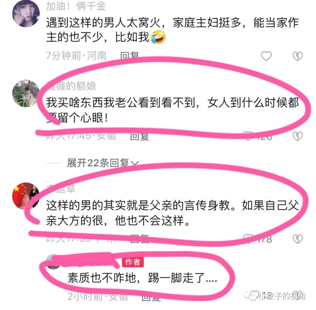 还有网友说:这样的男人其实就是父亲的言传身教,如果自己父亲大方的很,他也不会这样。