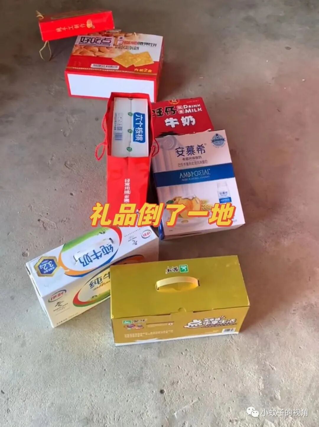 女人买了酸奶、买了儿童喝的牛奶,还买了饼干点心,最后又拿了一箱核桃露,这些礼物加起来也没多少钱,男人却不同意了。