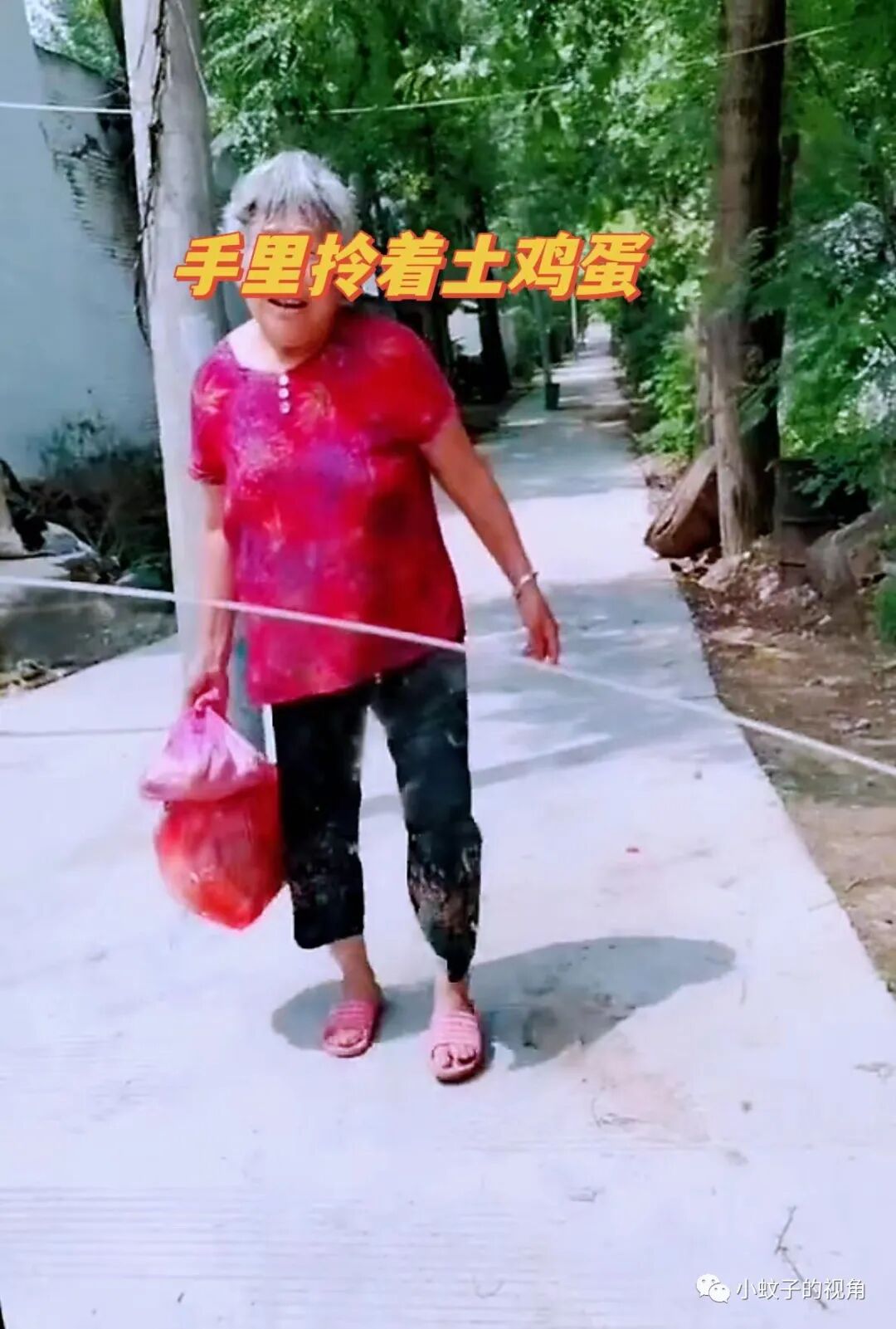 她手里的西瓜是自家院子里种的,一共结了两个瓜,一个被该女子的女儿回来的时候吃掉了,剩下的这一个给儿媳带回城里。土鸡蛋也是攒了很久的,带回去给孩子吃。