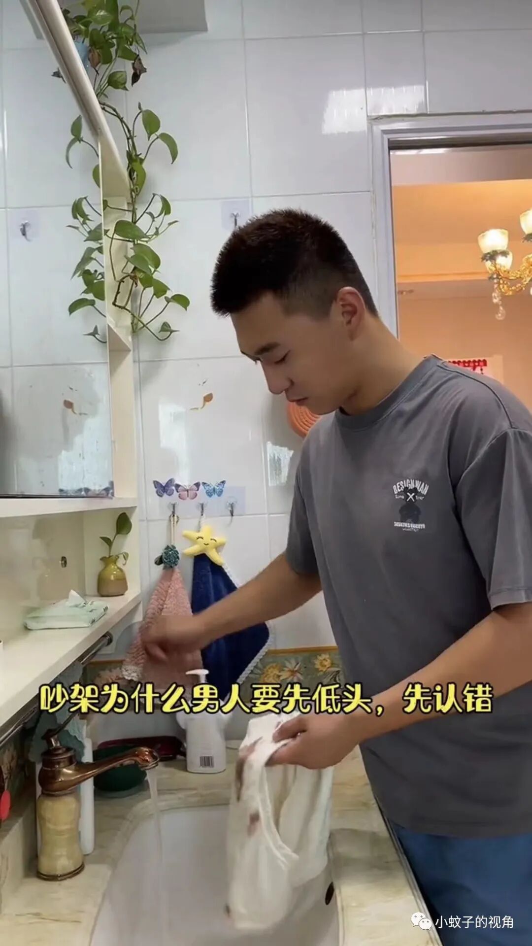 老公听了也很开心,让老婆躺下休息,自己跑去洗手间帮妻子洗衣服。
