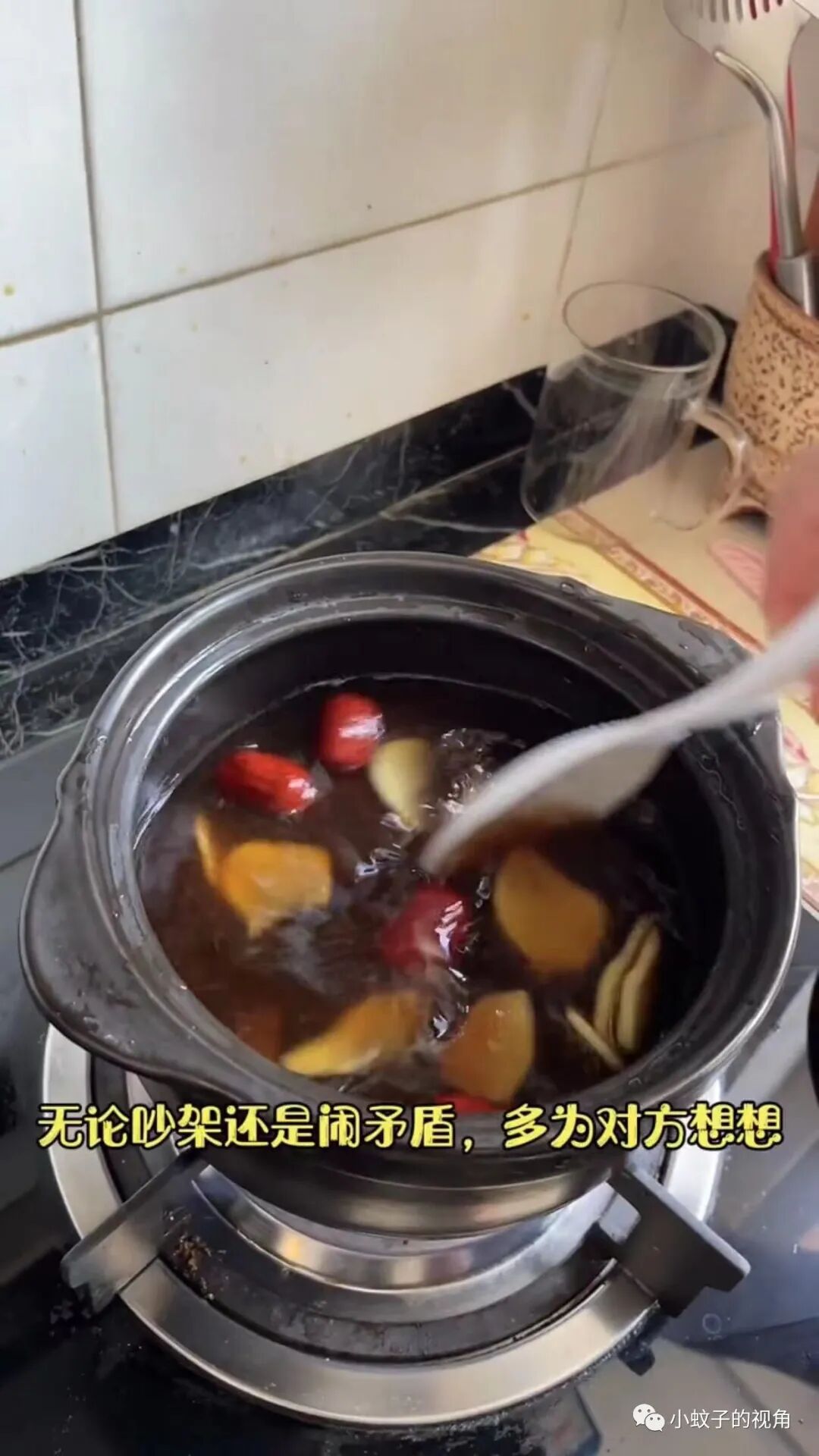 于是,男子准备了生姜、红枣、红糖,给妻子熬姜糖水。