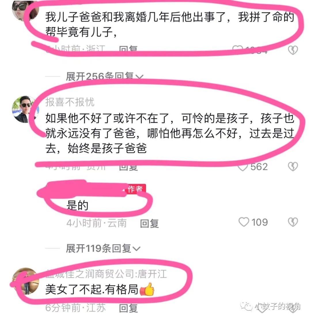 也有网友现身说法:我儿子爸爸和我离婚几年后出事了,我拼了命的帮他,毕竟还有儿子。