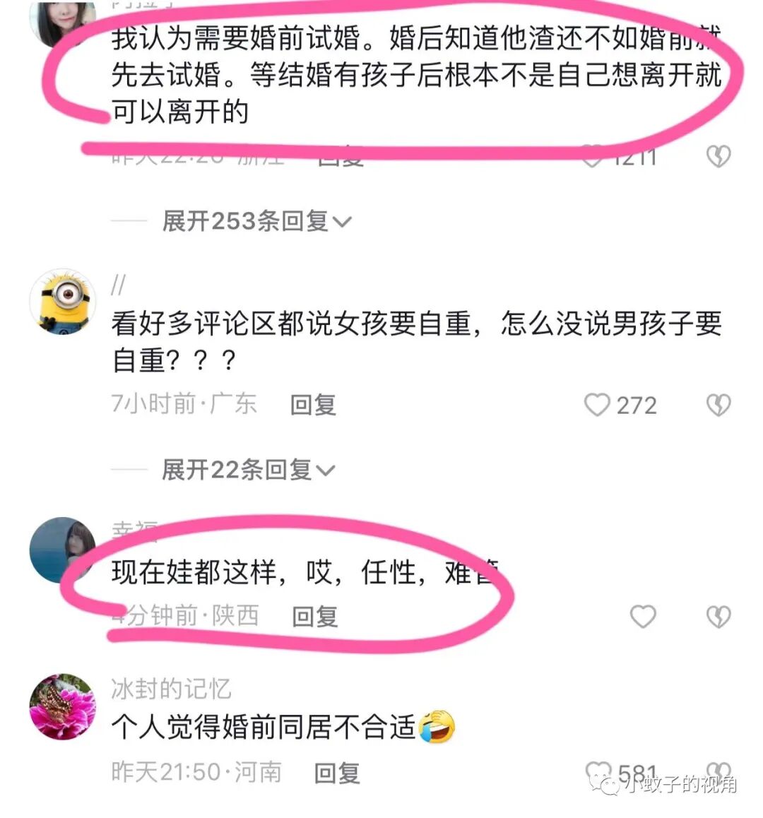 有的女性网友依然不同意这个说法,坚持认为:我认为需要婚前试婚。婚后知道他不好还不如婚前先去试试。等结婚有孩子后根本就不是自己想离开就可以离开的。