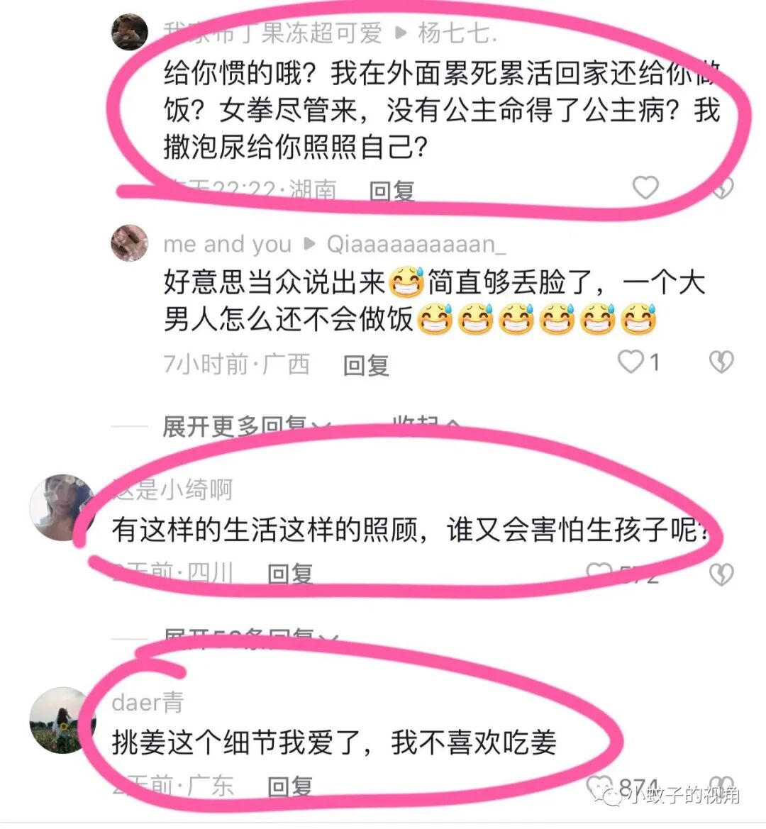 男性网友却说:这都是惯的,我在外面累死累活,回家还给你做饭?没有公主命却得了公主病,也不照照自己的样子。