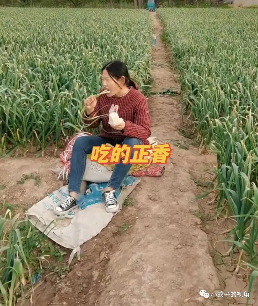 笔者看了不由得想起了小时候,母亲也是这样在地里吃饭的,一个馒头,一碗咸菜,搭配着刚从地里拔出来的大葱,就是一顿饭。