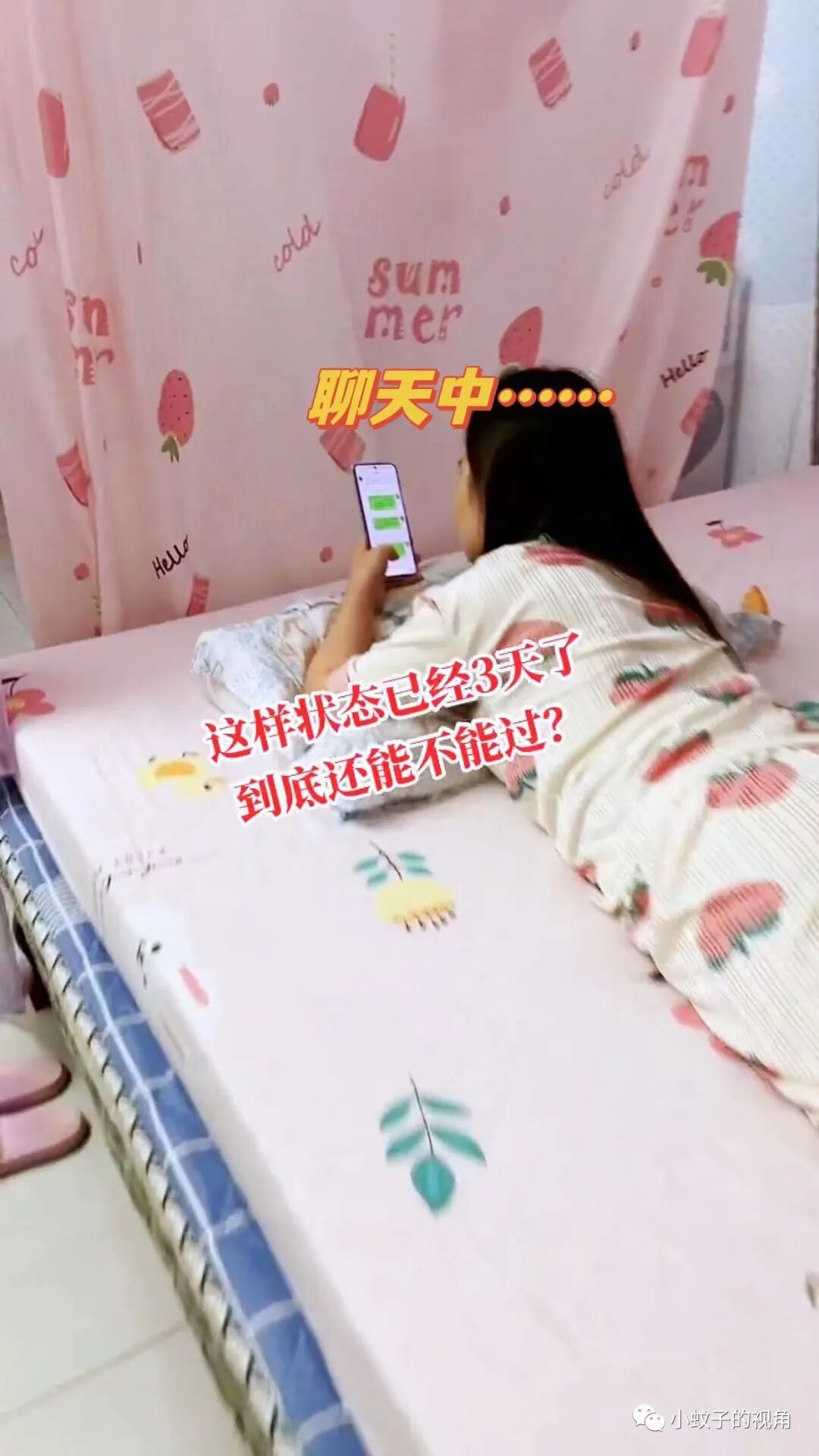 却发现妻子还没睡,正拿着跟别人聊得开心,看到老公进屋,快速把手机藏起来。