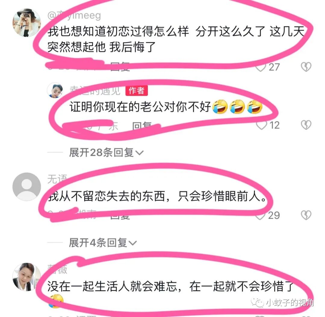 还有网友感概:我也想知道初恋过得怎么样,分开这么久了,这几天突然想起他,我后悔了。