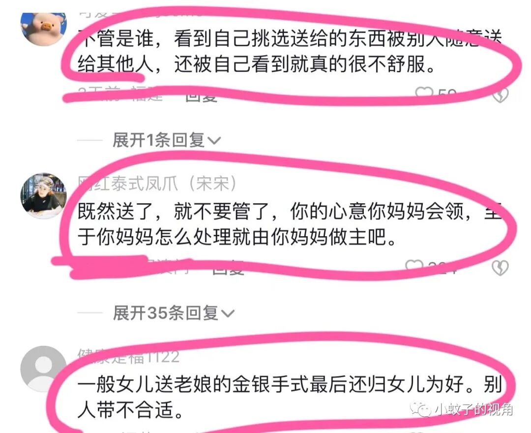 也有网友说:既然送了就不要管了,你的心意妈妈会领,至于妈妈怎么处理就由妈妈做主吧。