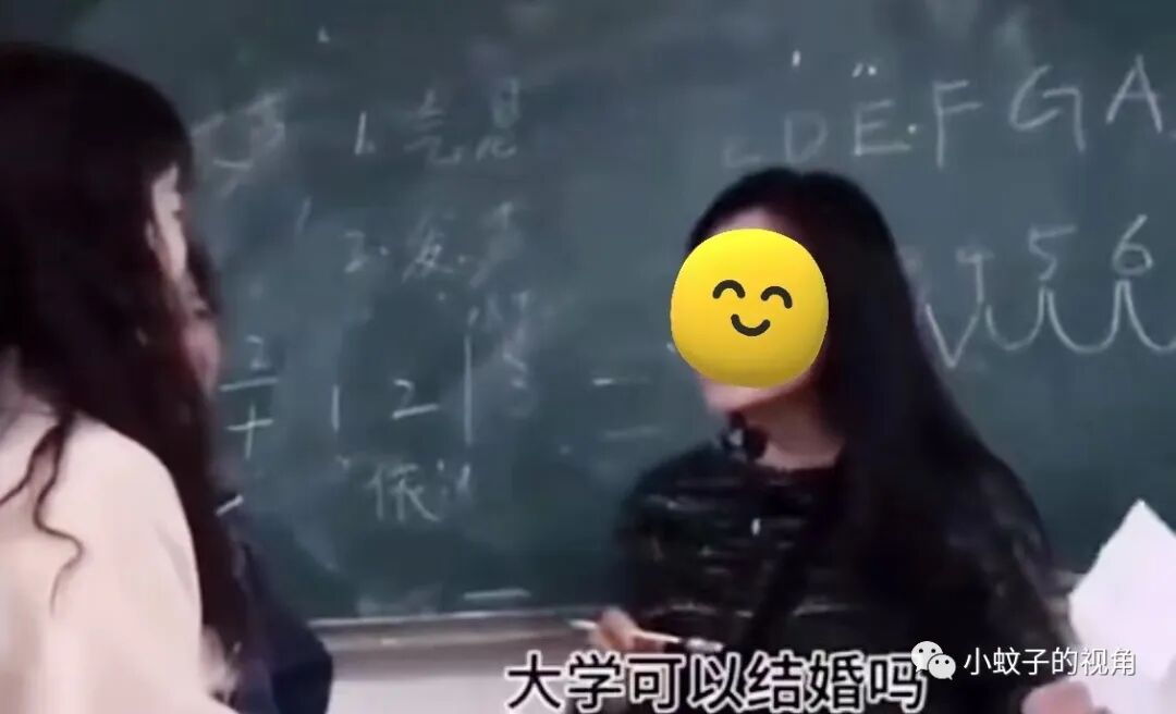 于是,就出现了女孩找老师请假的这一幕,老师得知女孩要请假回家结婚时,还不可思议问:“大学生可以结婚吗?”