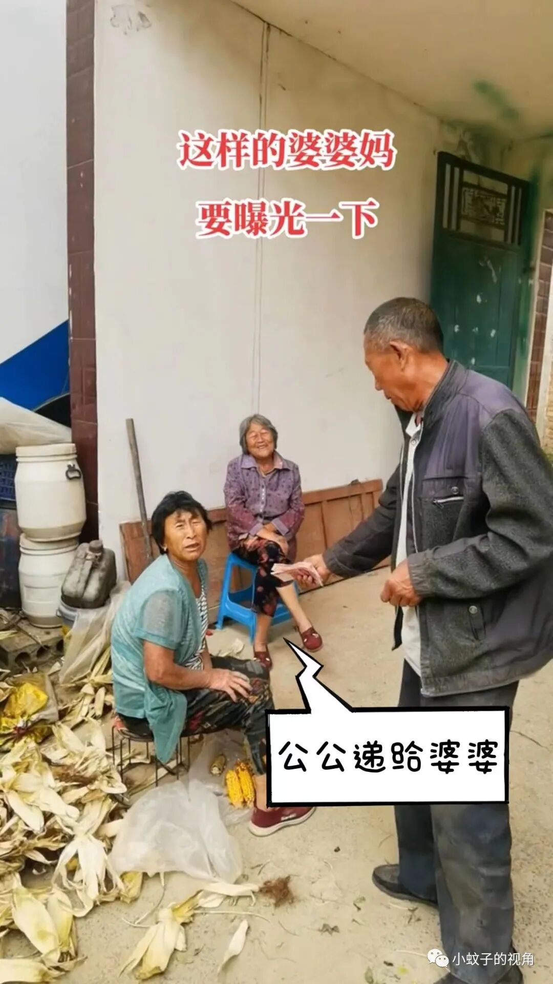 这里值得注意一下,公公把钱递给婆婆,再由婆婆递给儿媳,而不是公公直接递给儿媳。细节中彰显出这一家人的素质。