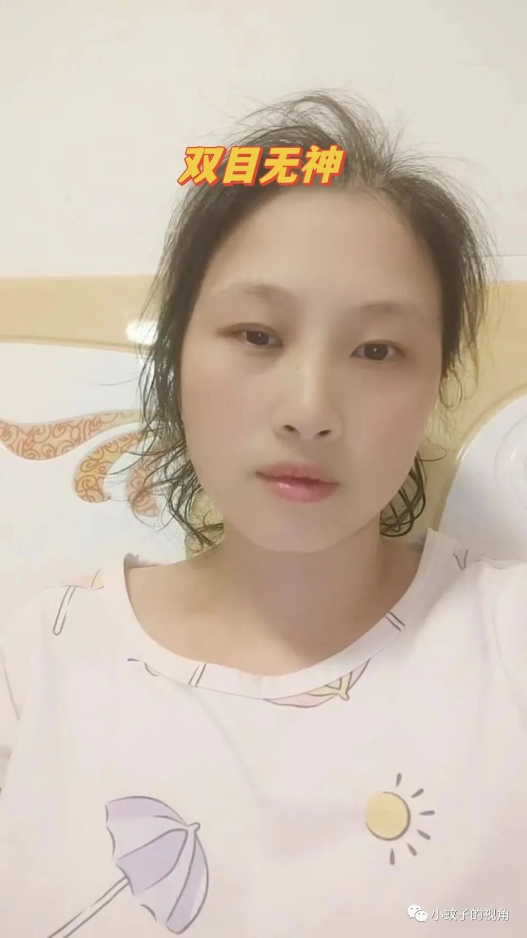 猛一看这位女子面容姣好,长发及颈,皮肤白皙,只是眼睛里没有光芒。等她低下头的那一瞬间令人大吃一惊!