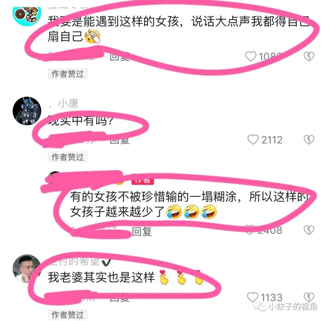也有网友说:如果我有这样的老婆,如果我敢跟她大声说话,我都得抽自己耳光。