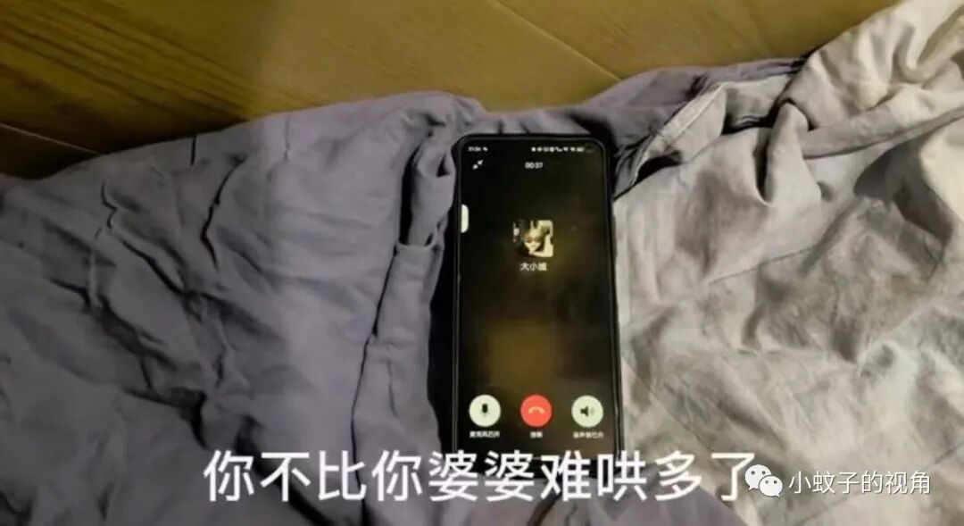 从女子话语里可以看出,她跟婆婆吵架后自己也有些后悔,也怕老公两头为难。所以跟老公汇报这件事的时候有点心虚。