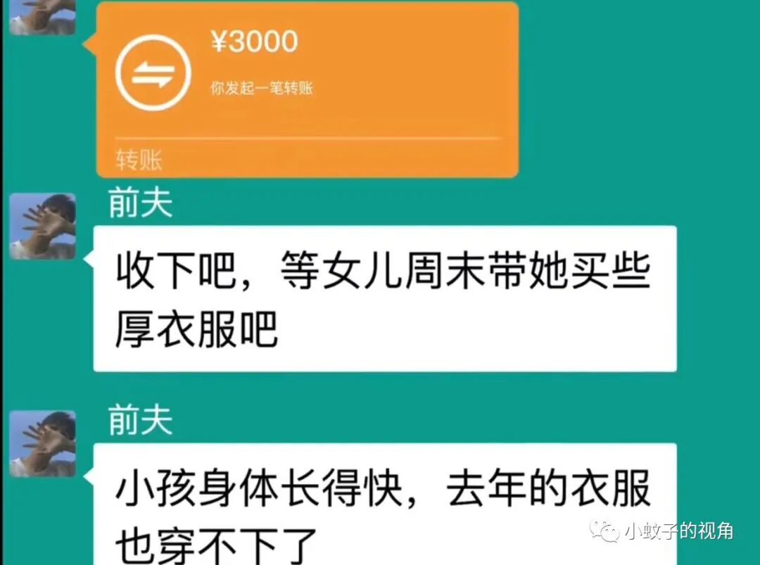 没想到前夫却二话没说就转了3000块钱,让她给孩子买衣服。