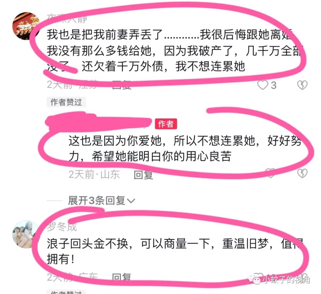 也有网友现身说法:我也把我前妻弄丢了……我很后悔跟她离婚。