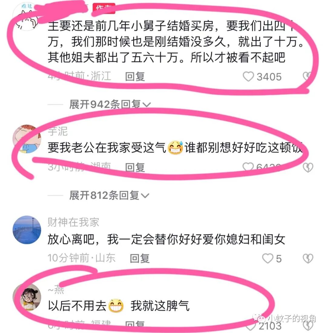 有位女性网友说:如果我老公在我家受这委屈,谁都别想好好吃这顿饭。