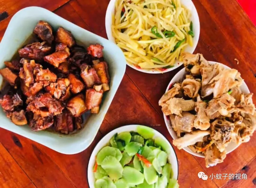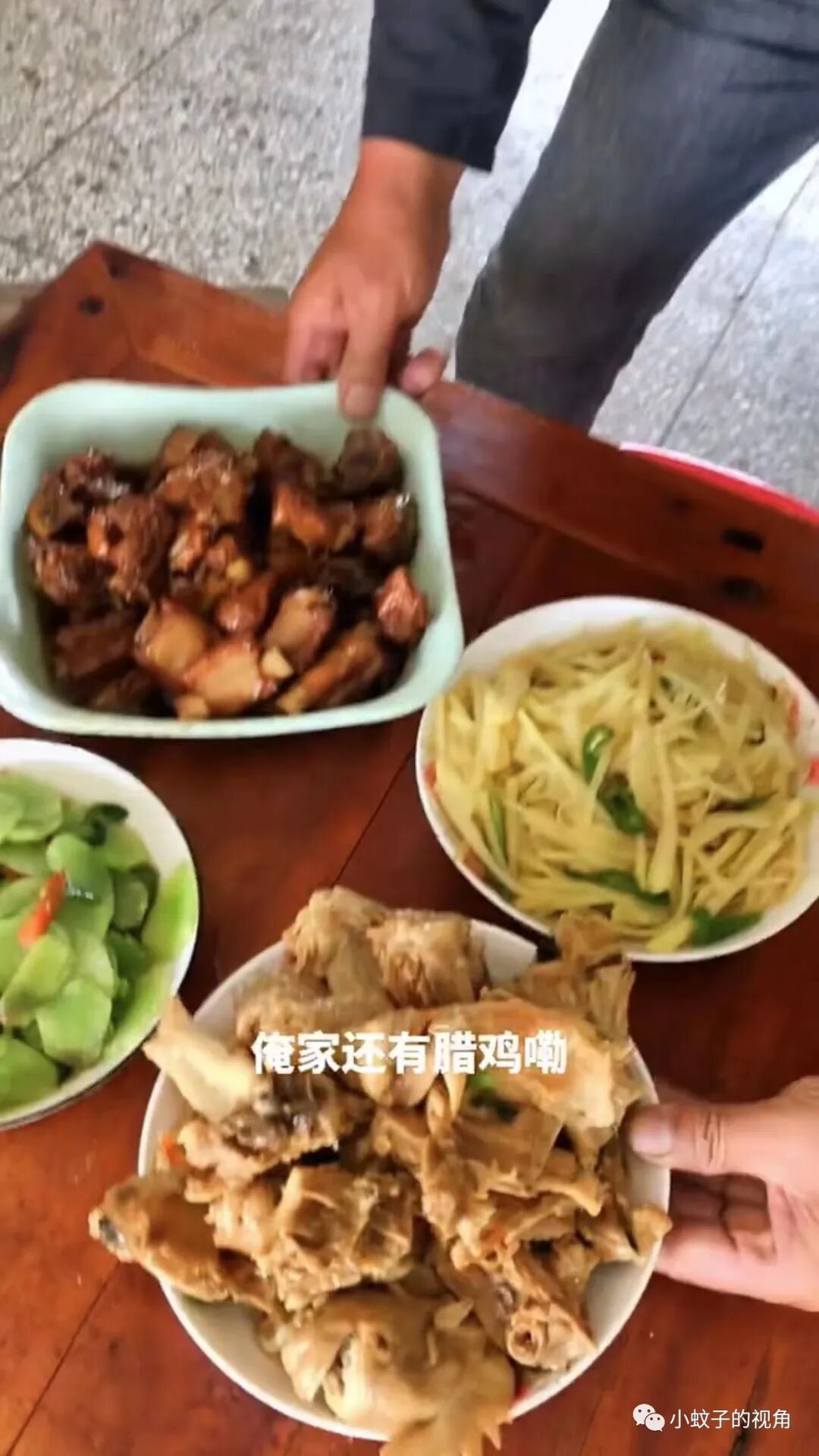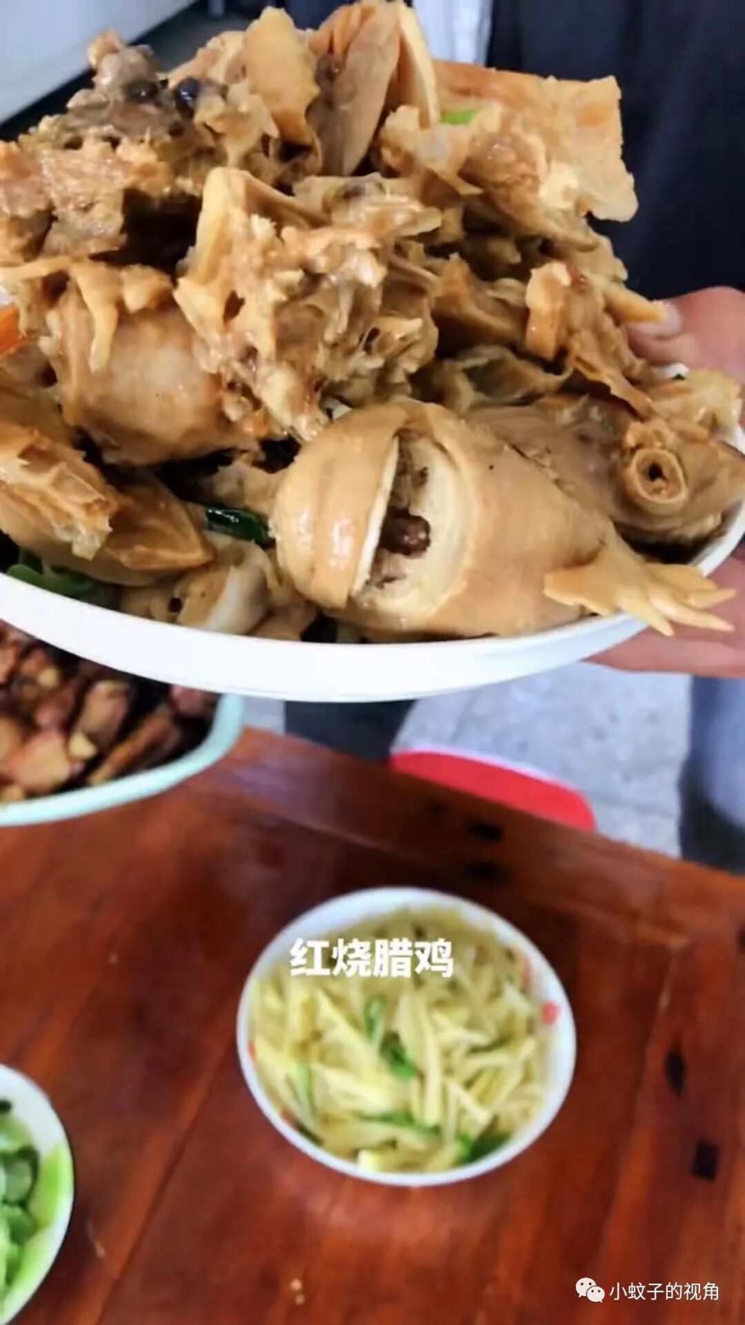 桌子上除了腊鸡还有一盘儿媳爱吃的红烧排骨,还有两盘青菜,荤素搭配营养全面,让人看上去食欲大振。
