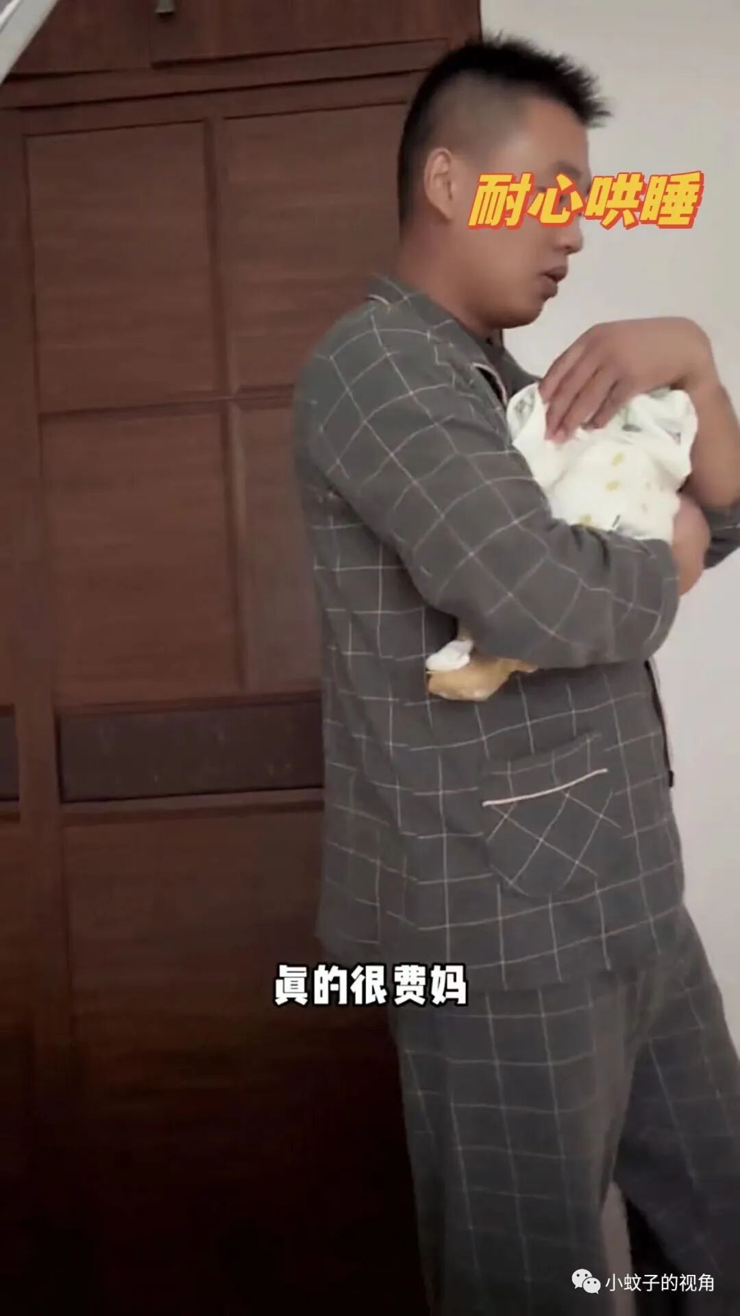 他说:这个孩子真的很磨人,不知道怎么了,总是哭,要一直抱着才行,真的很费妈。他能理解老婆的辛苦。
