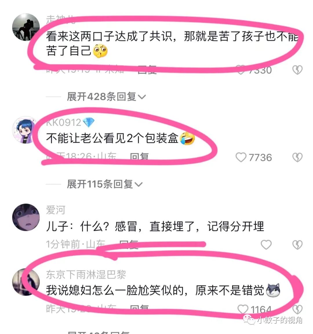 还有网友笑道:看来这两口子达成了共识,那就是:苦了孩子也不能苦了自己。