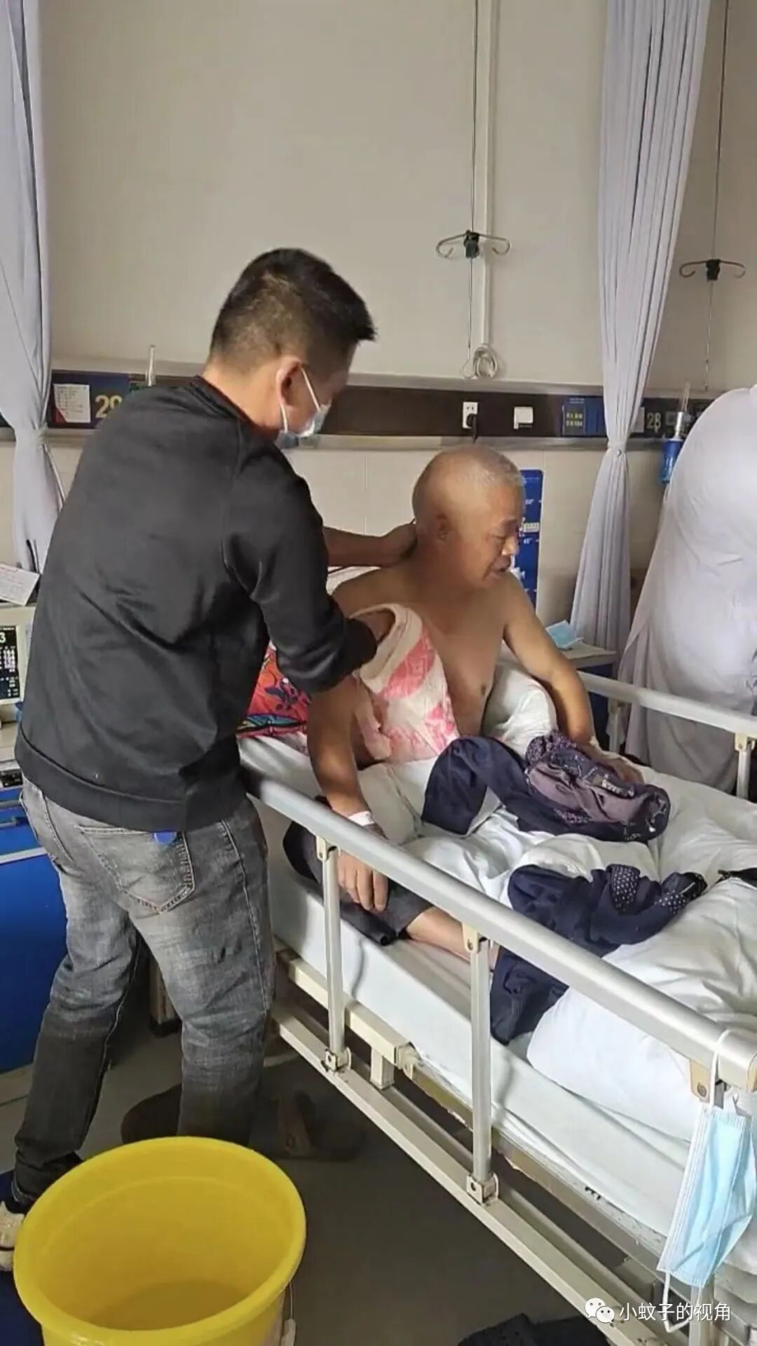 不了解实际情况的病友还以为这是老人的儿子,当他们知道这位是女婿时,忍不住竖起大拇指:一个女婿半个儿,你这个女婿比儿子还靠谱!