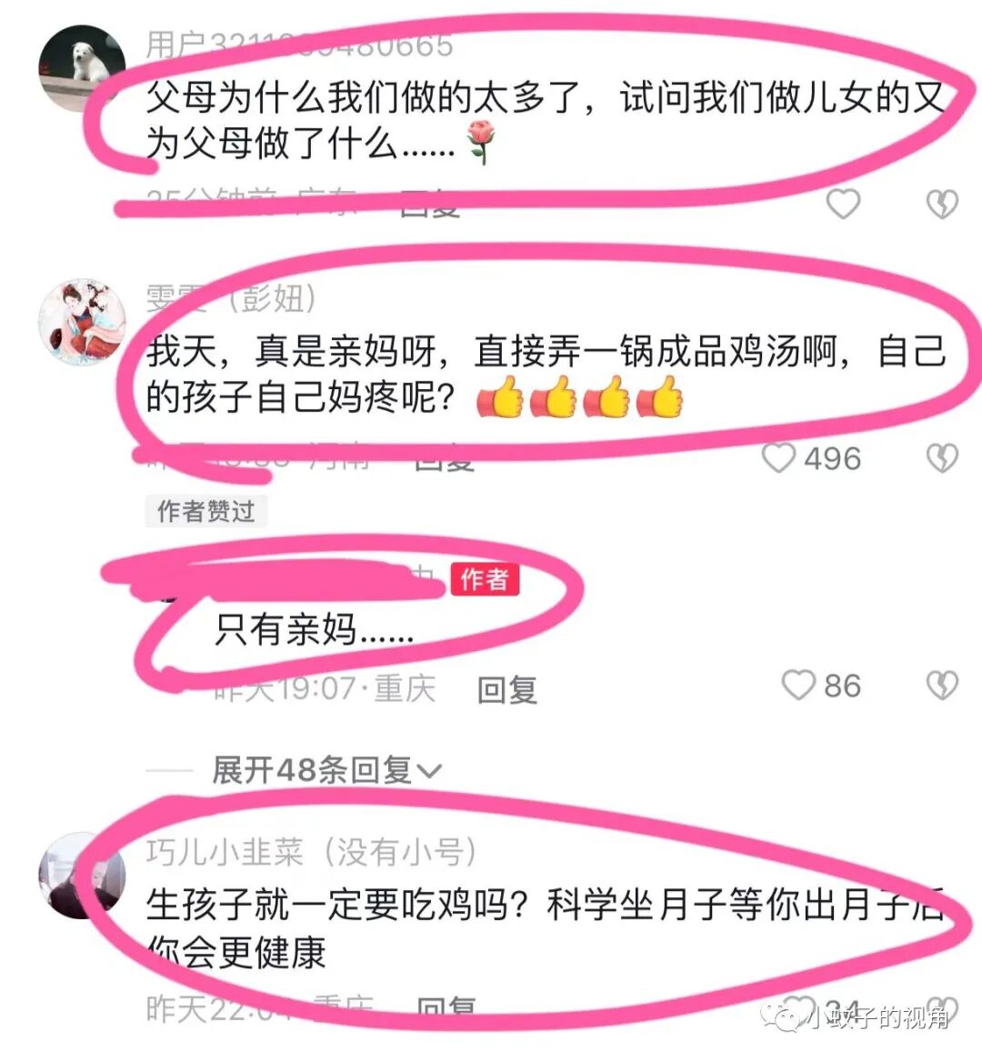 也有网友忍不住感慨:我的天!这真是亲妈呀,直接弄一锅鸡汤,自己的孩子自己疼。