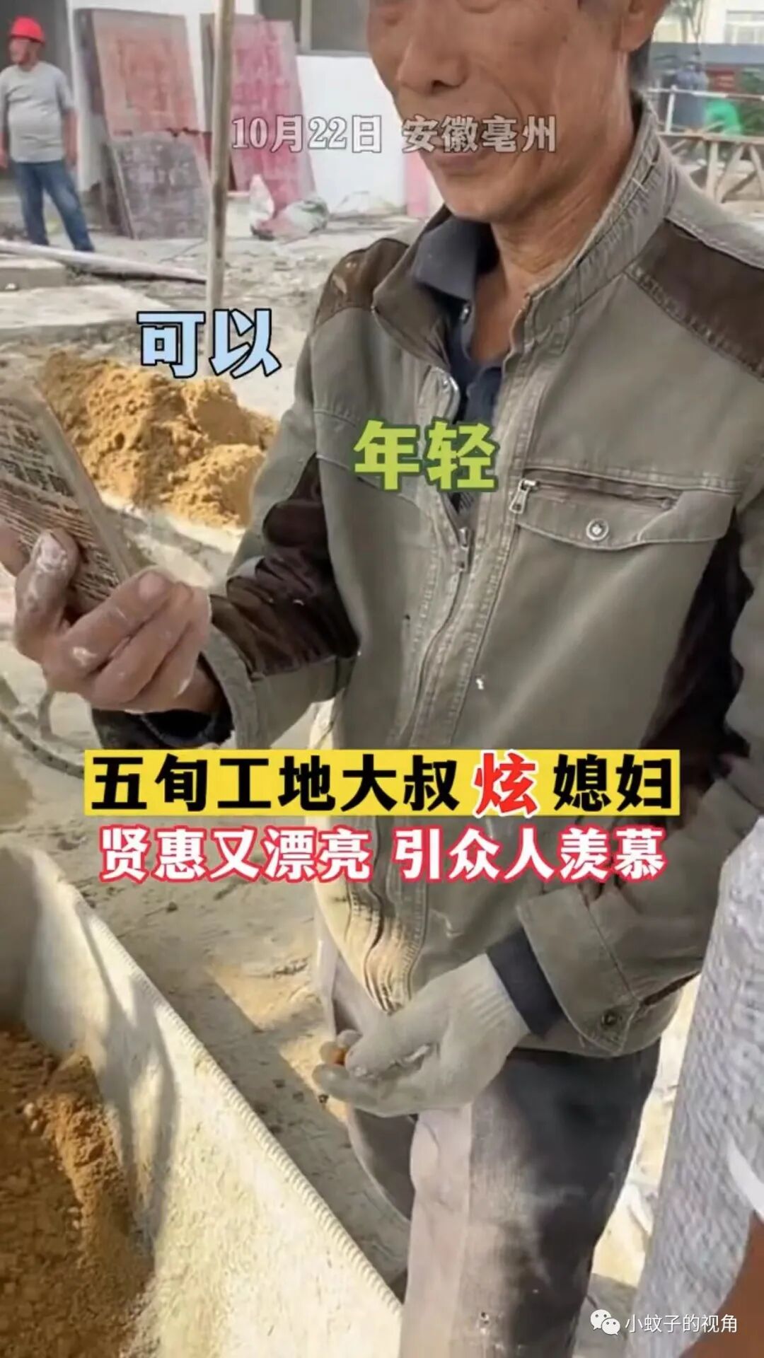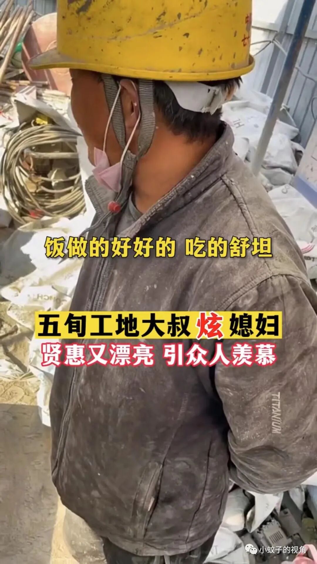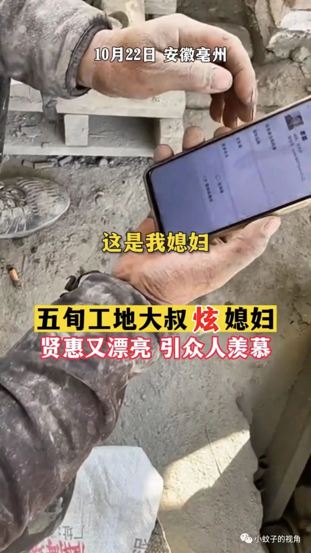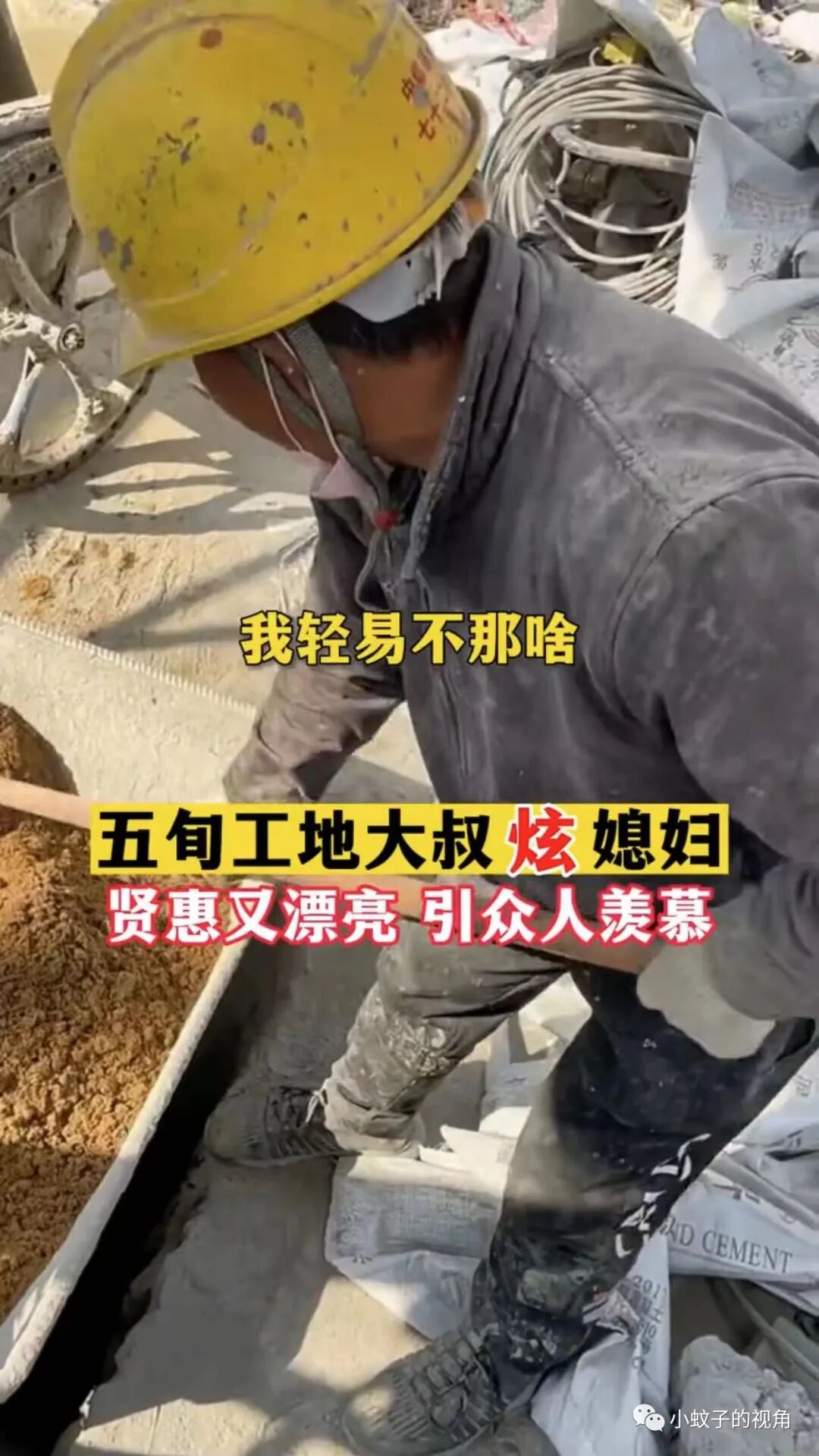 所以在工地闲暇时间聊女人的还算比较多,这位大叔也不例外,只是他并没有聊别的女人,而是在炫耀自家媳妇。