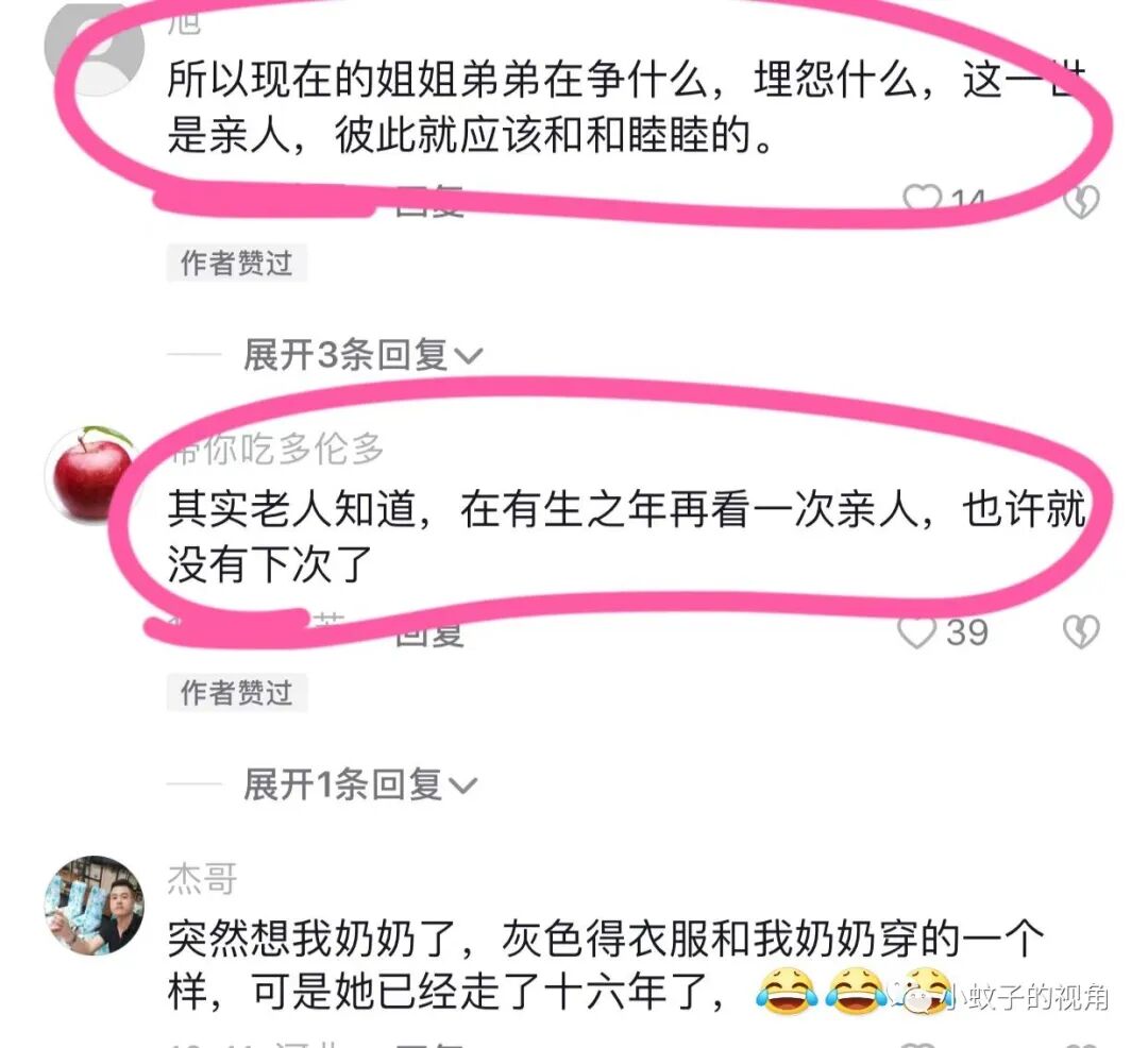 网友看了忍不住感慨:所以,现在的姐姐弟弟在争什么?埋怨什么?这一世是亲人,彼此就应该和和睦睦的。