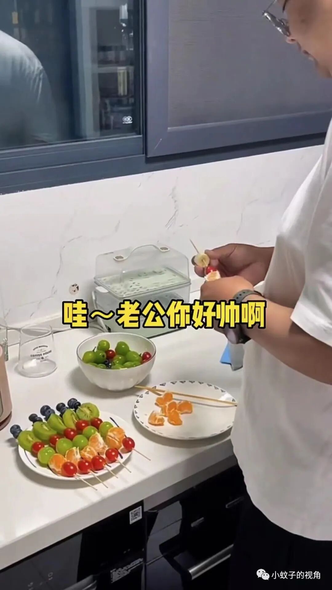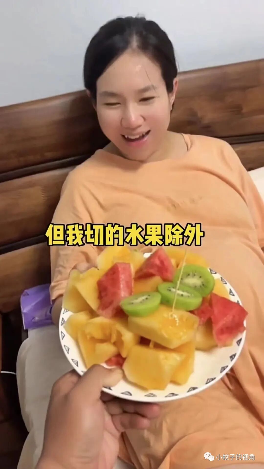 男子却说:吃水果对皮肤好,对宝宝也好。我虽然代替不了她怀孕的辛苦,那就要更好地照顾她。我虽然不是大厨,但是也愿意为了她而努力。