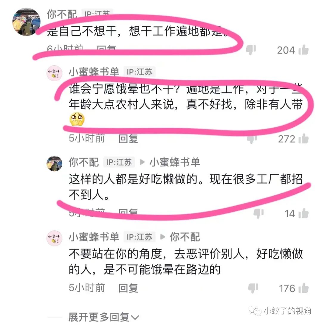 也有人并不认可,反驳道:谁会宁愿饿晕也不干?遍地是工作,对于一些年龄大点的农村人来说,还真不好找!除非有人带。
