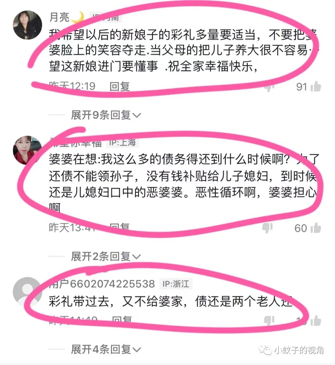 也有网友说:彩礼不是都得带回婆家吗?还是你家的钱,弄得跟谁欠你几百万似的。