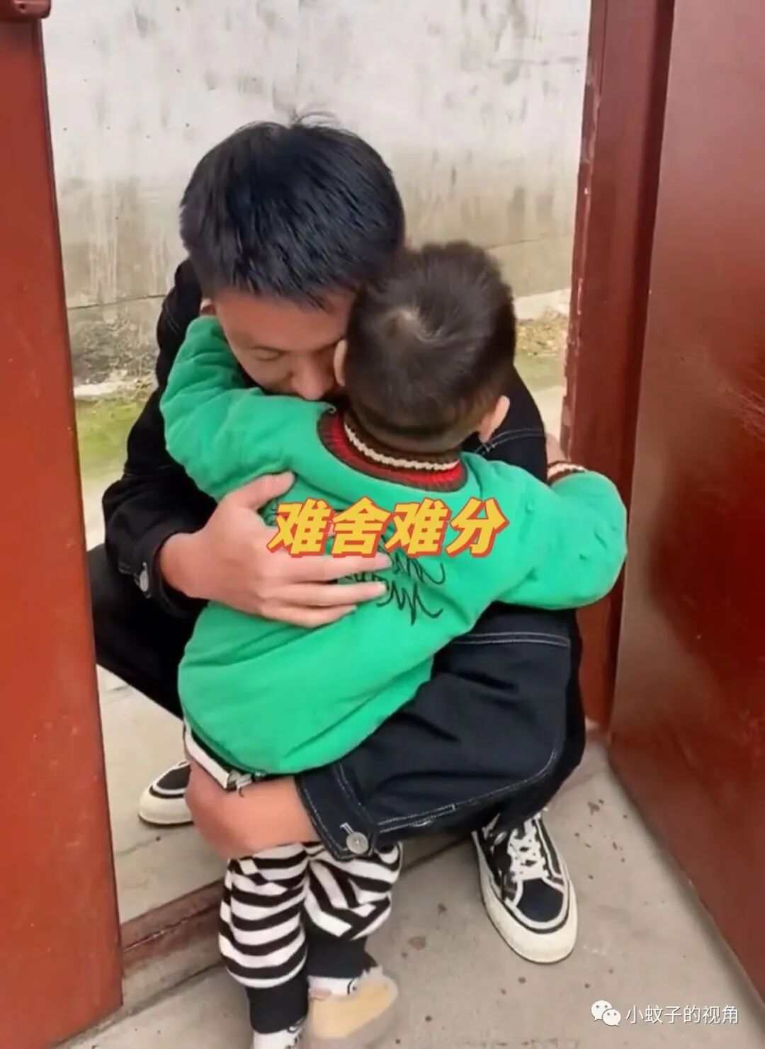 前夫也不忍心,回过头来抱了孩子一下,还安慰他要乖乖听话,他还会回来的。