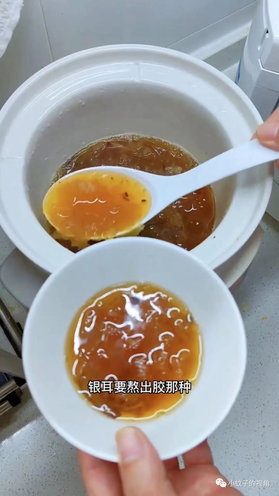 下午三点是加餐时间,红枣银耳羹,还要银耳熬出胶那种,既滋补又美味,这个是中午提前就熬上了,老婆盛出来就能喝。