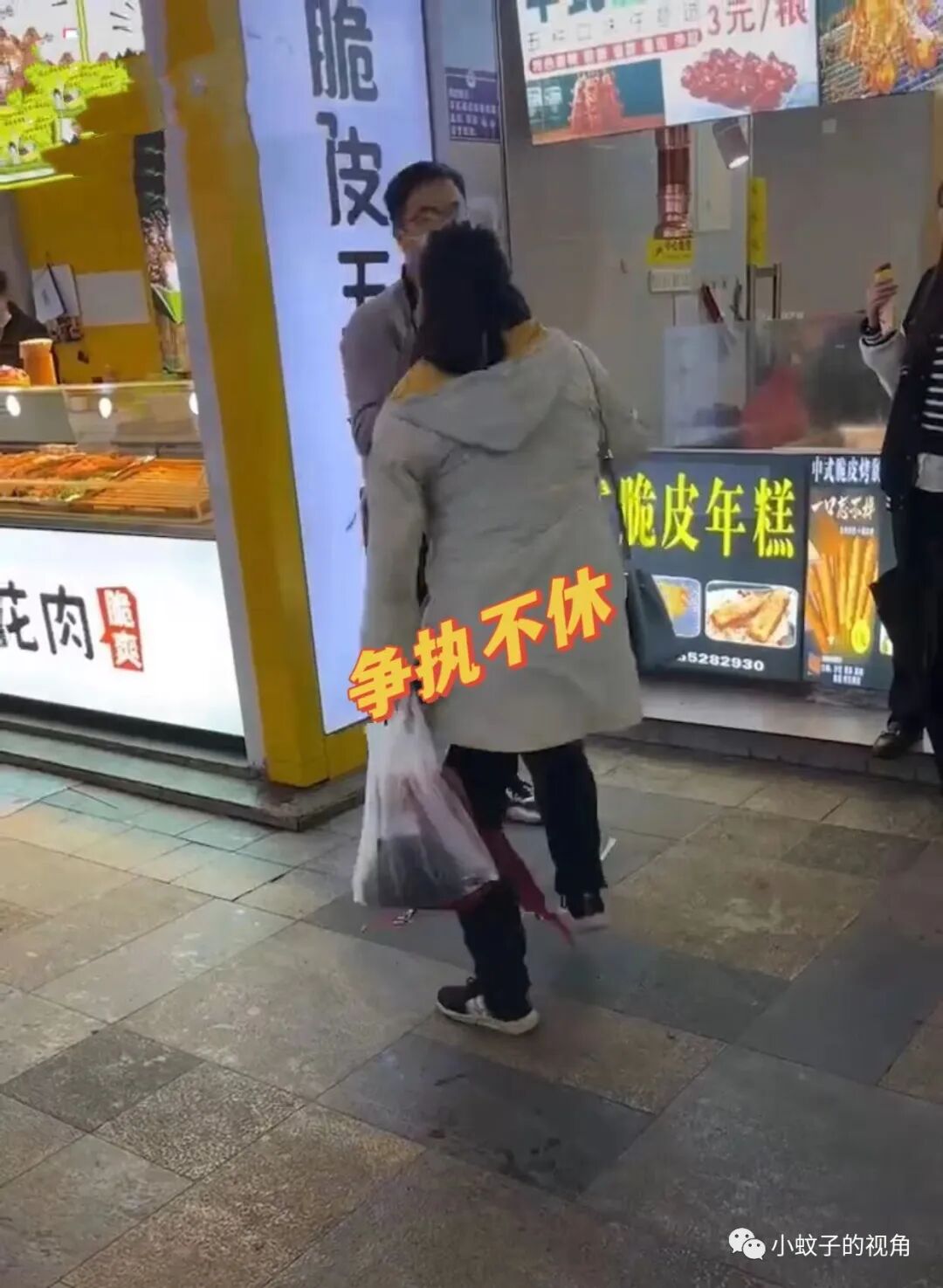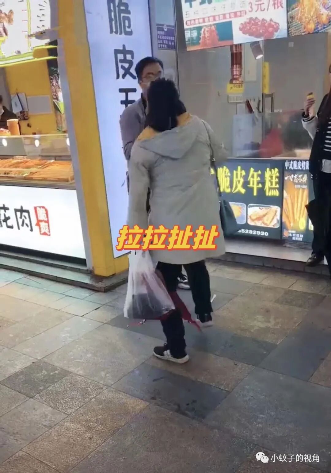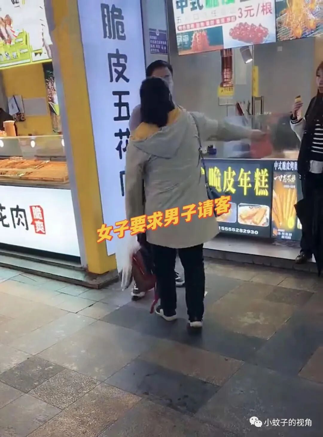 男孩想走,女孩想要让他请客吃饭,于是就出现了开头的一幕,两个人在大街拉拉扯扯,引得路人纷纷侧目。