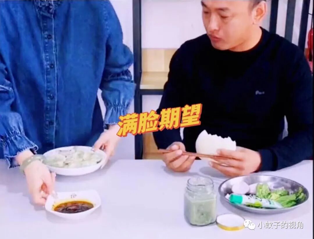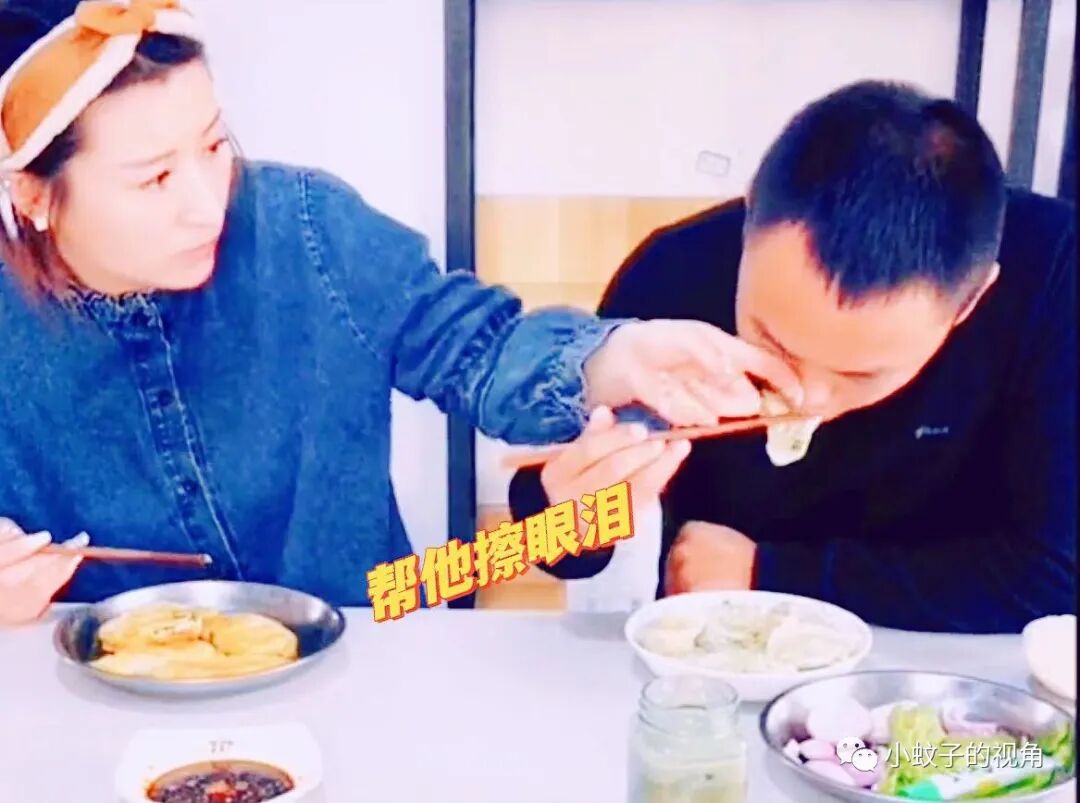 说着将煎饺推给妻子,自己端起那盘“加工”过的水饺,一口下去泪流满面。