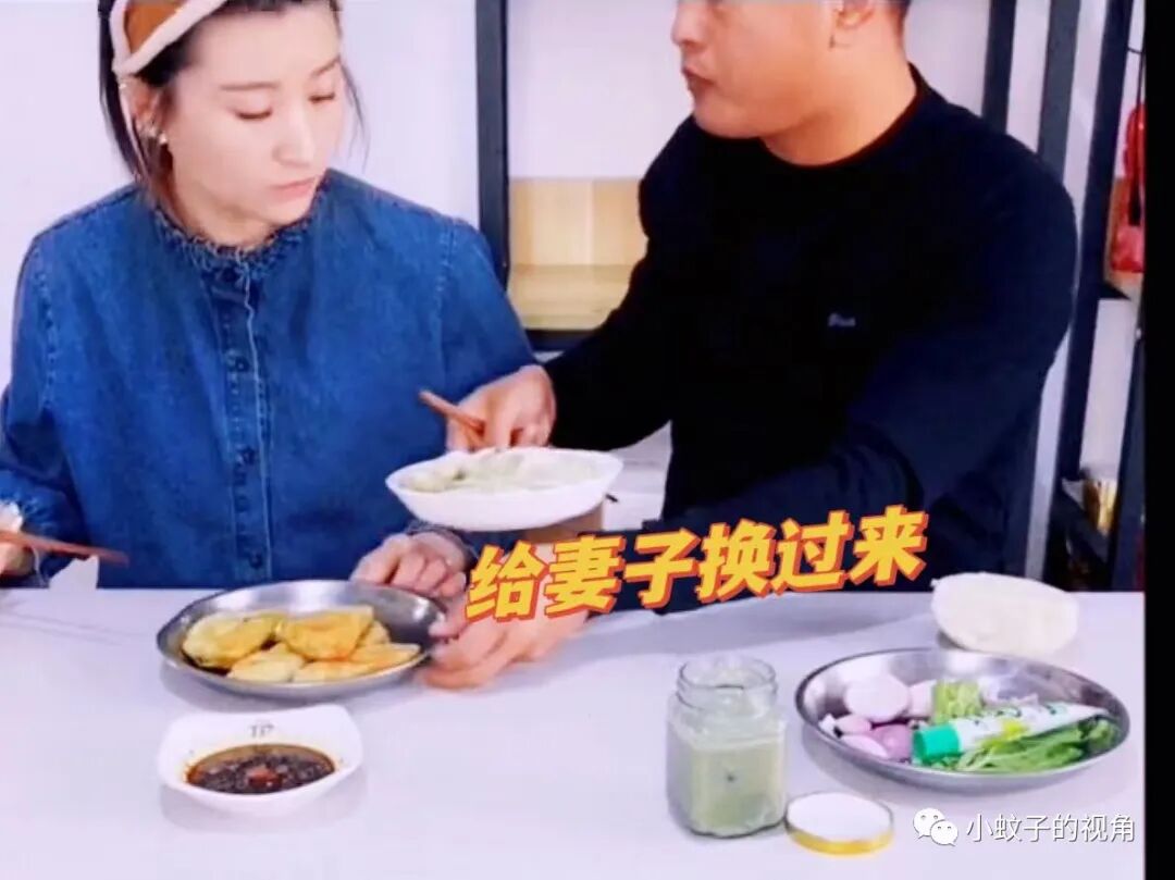 却没想到,妻子把一盘煎好的水饺端到他面前,示意老公吃这盘煎饺,把馒头放下,别吃了。