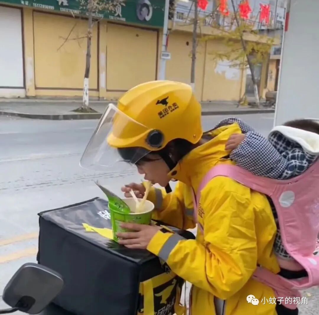 一个女人带着这么小的孩子送外卖,真的太难了!