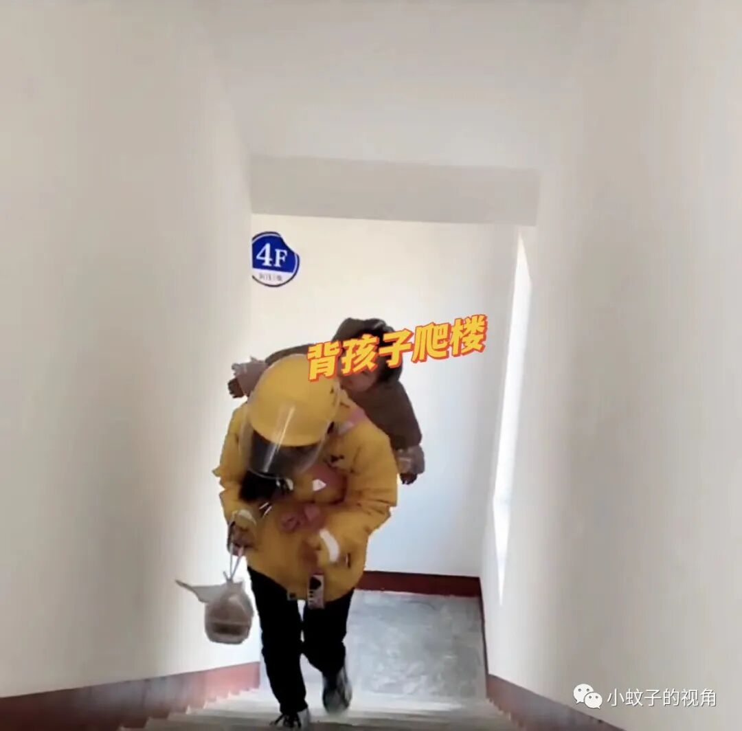 背着孩子爬楼梯、背着孩子吃泡面都是家常便饭,最难的还是孩子不听话哭闹的时候,累得不仅是身体,还有心灵。