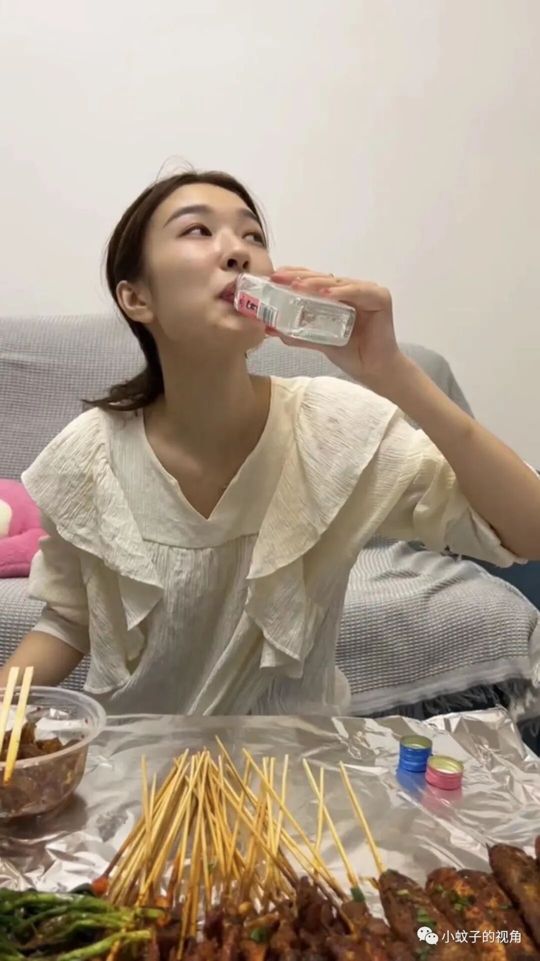 其实妻子并不会喝白酒,这一天也是如此,对着瓶口小小的喝一口辣得直吐舌头,用手不停地闪着风,想要缓解喝酒后的刺激。
