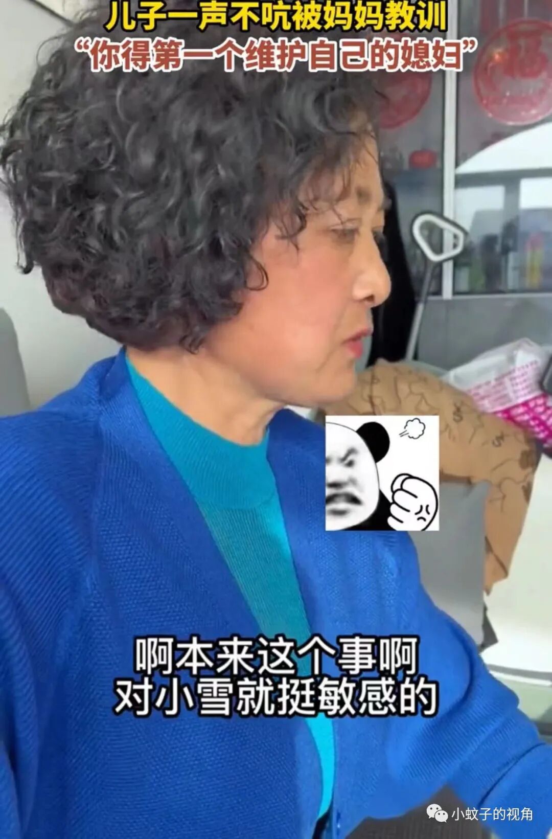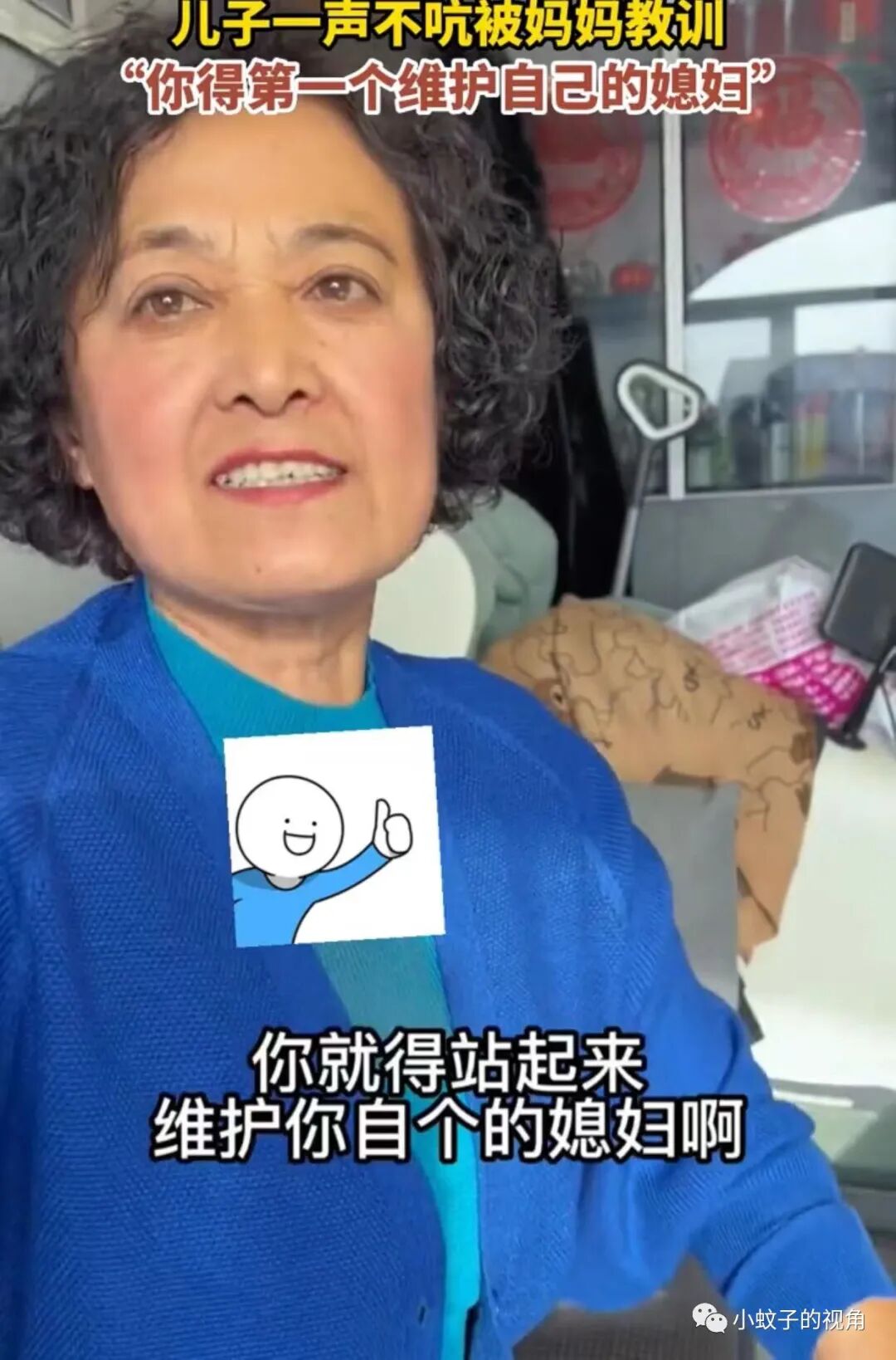 妈妈不高兴了:“不管是自家人也好,外面人也好,只要是说你媳妇的时候,你当老爷们的,你就得站起来,维护你自己的媳妇啊!这点自觉都没有吗?”