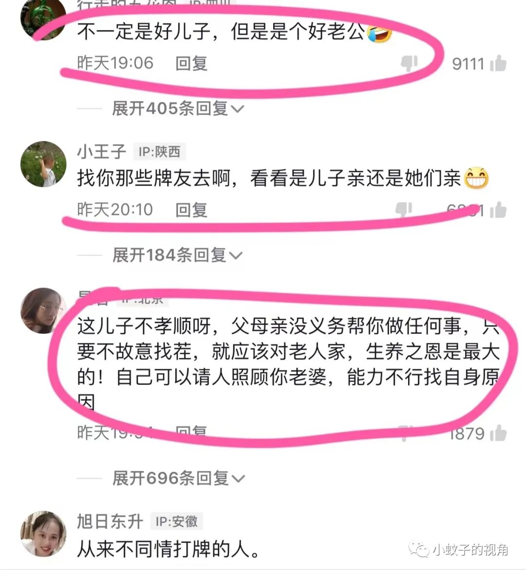 也有人说:找你那些牌友去啊,看看是儿子亲还是他们亲。
