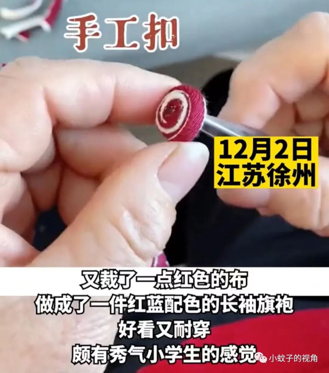 看到这位外婆改制的衣服,让人忍不住想起了童年的时光,那时候我们也是穿着大人改制的衣服去上学,只有过年的时候才能买一件新衣服。