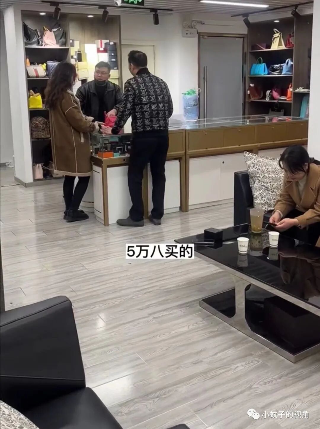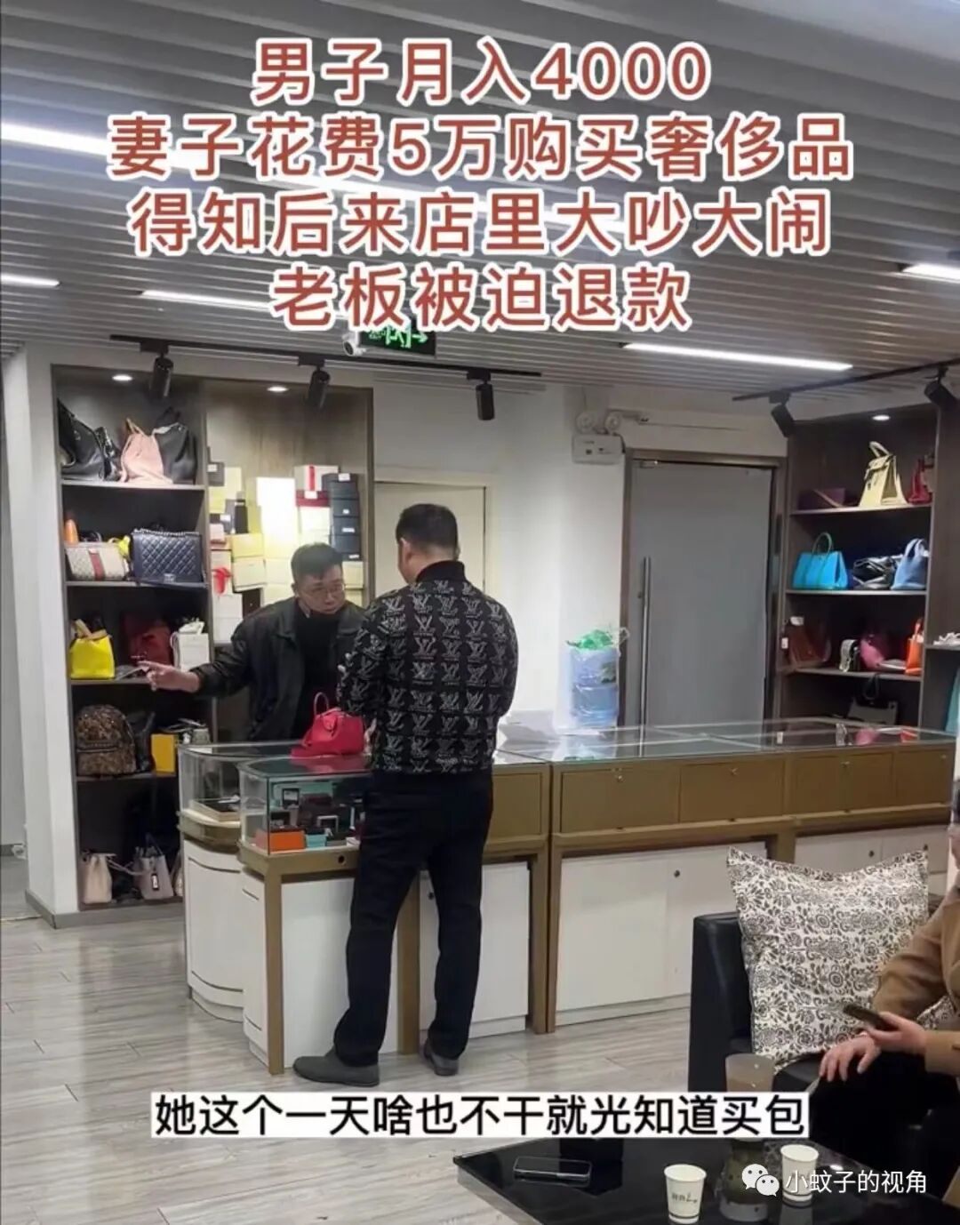 说完,妻子转身离开,男人跟店员交涉:“我工资只有4000块一个月,她一天啥也不干,就知道买包,这日子怎么过?退掉。”