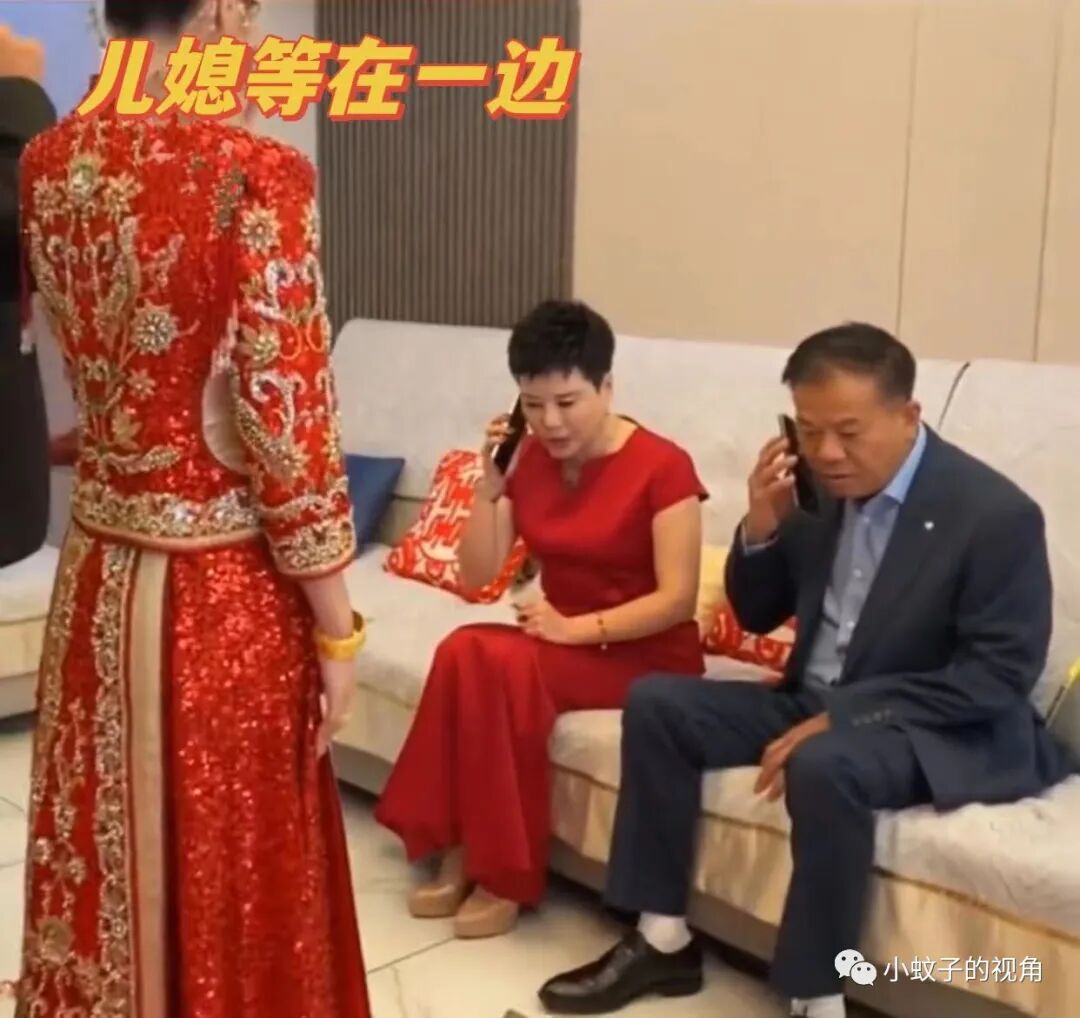 福建宁德的这对公婆却不一样,他们不仅有时间接电话,就连儿媳端着茶水将要给公婆敬茶的时候,他们还抱着电话忙个不停。