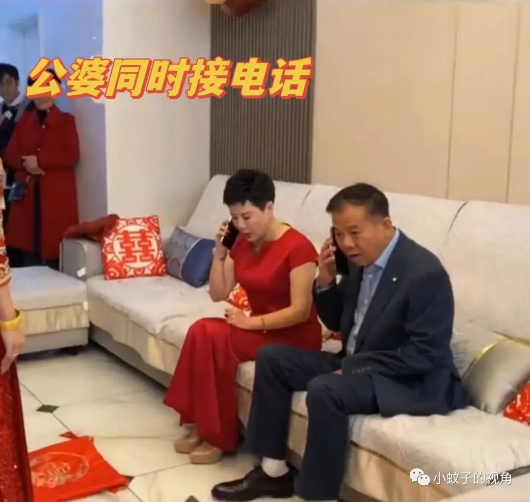 还有网友却看到了不一样的角度,说:你看,公婆接电话都说得非常简短,并不是公婆不重视这个婚礼,可能是真的太忙了!都理解一下就行了。