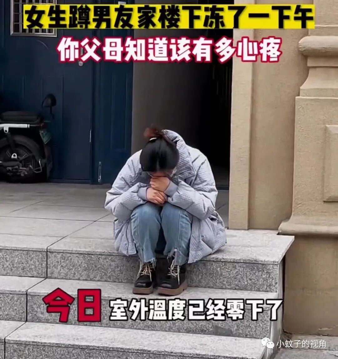 网友说:为了这样的男人,真的不至于这样坐,冻坏了自己受罪,也只有你父母心疼。他依然不会心疼你、珍惜你!
