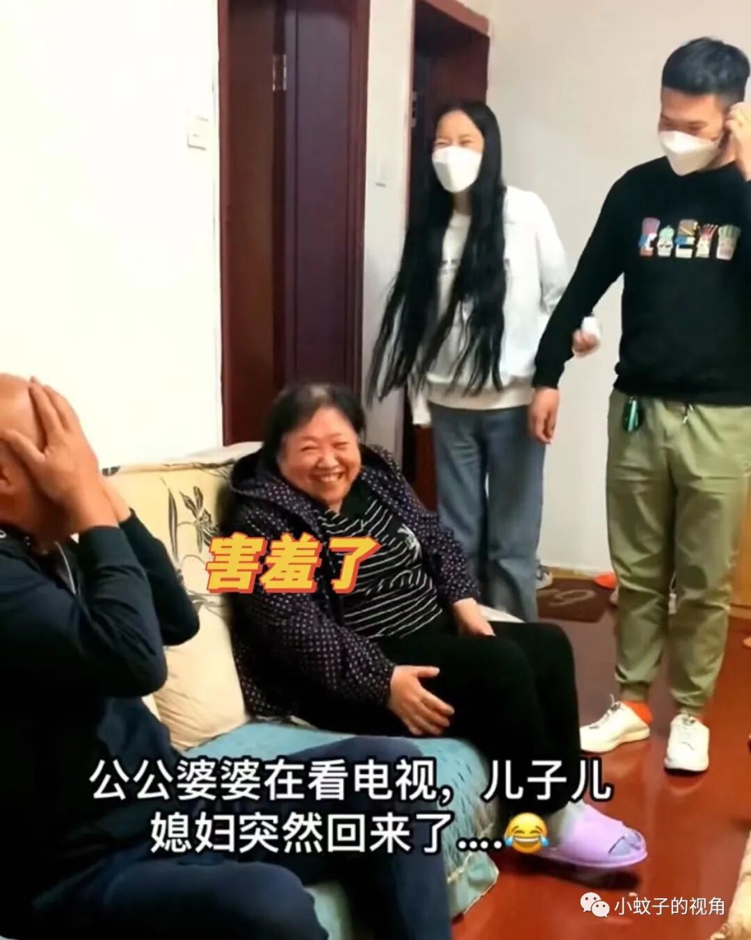 直到调皮的儿媳走上前叫了一声“妈”,老两口才被吓了一大跳。